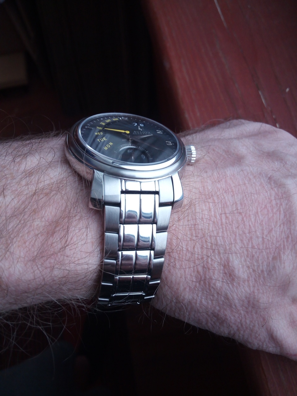 Продам Accutron Amerigo от Bulova. Очень красивые, очень заметные на руке и не банальные костюмные часы практически в идеальном,т.е. новом состоянии. Часы на улице не были. На безеле в районе 12 часов есть еле заметные, если только очень присматриваться волосяные полоски, даже сфоторгафировать их так и не смог