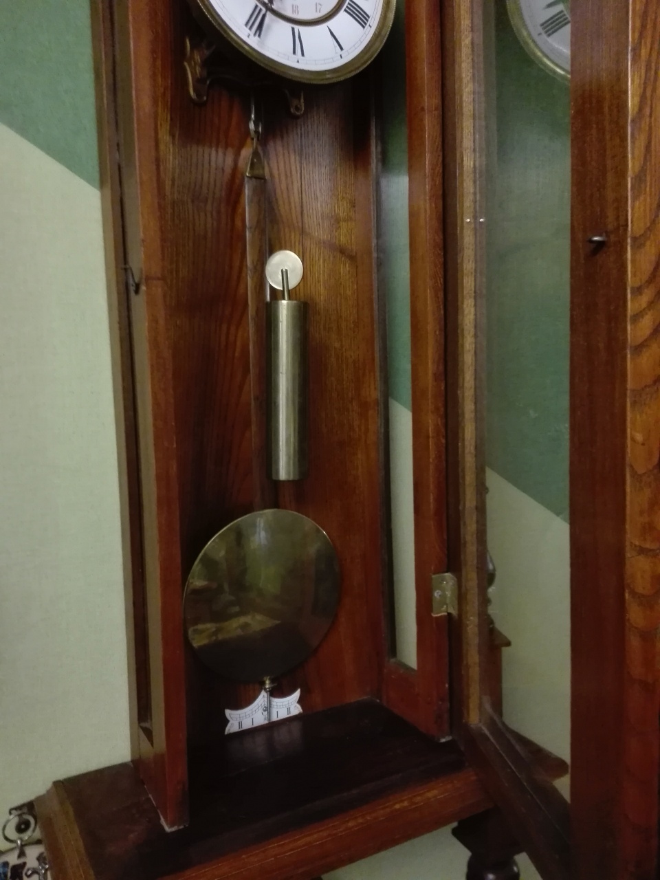Одним из первых приобретением в свою коллекцию были жильные часы Gustav Becker. Вернее, их мне навязали за смехотворную сумму. Короны не было, но всё остальное вы видите на фото. Только гиря была хромированная и я выточил новую такого же веса. 1,3 кг. Теперь, через 10 лет, стал сомневаться. А может эта родная?