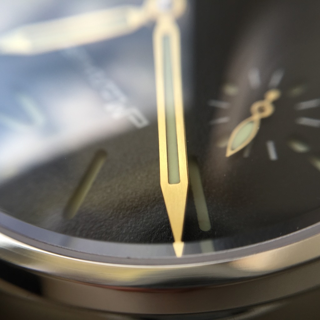 * Золотистые стрелки-карандаши. Люминофор такой же, как на циферблате.
