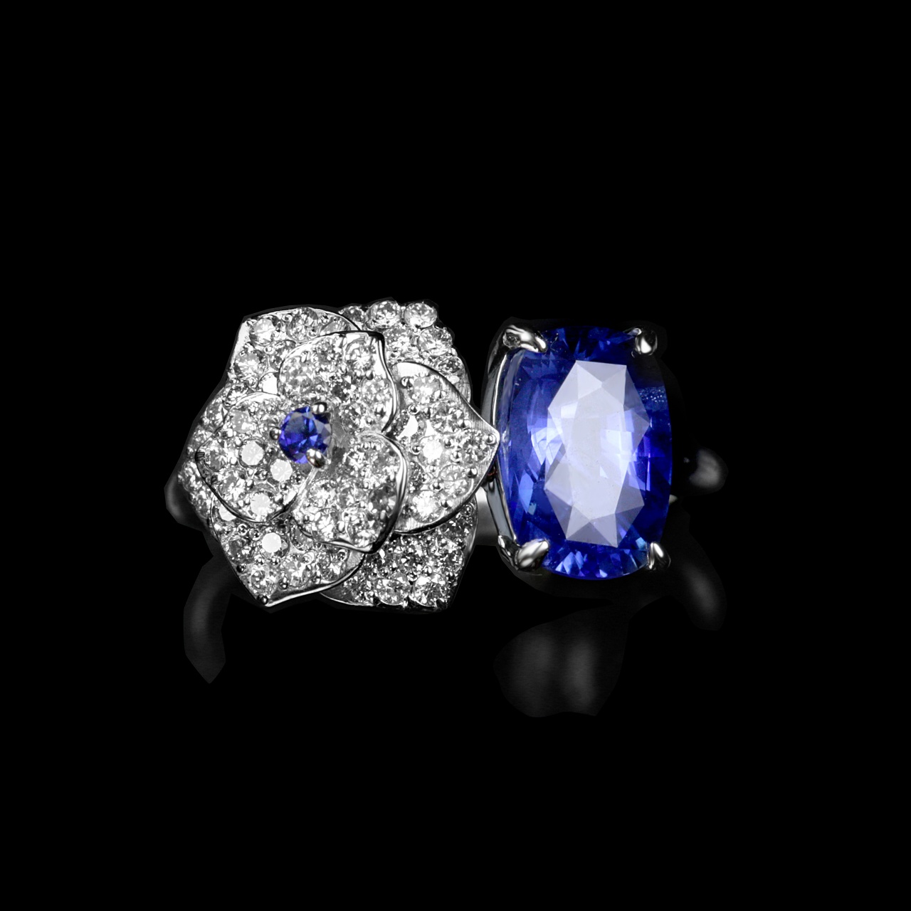 Кольцо из белого золота с сапфиром 2,12 карат и бриллиантами 0,37 карат.