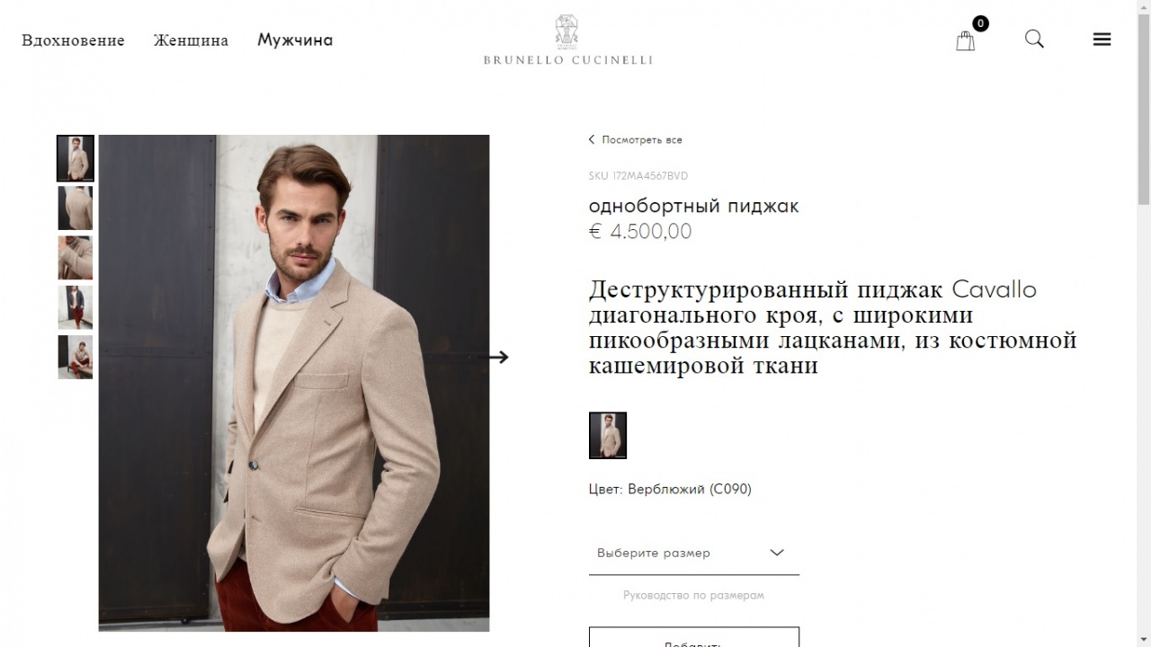 Стоимость пиджаков данной марки закономерно находится в высшем ценовом сегменте - 2.500-4.500 евро. https://shop.brunellocucinelli.com/r...6%D0%B0%D0%BA/