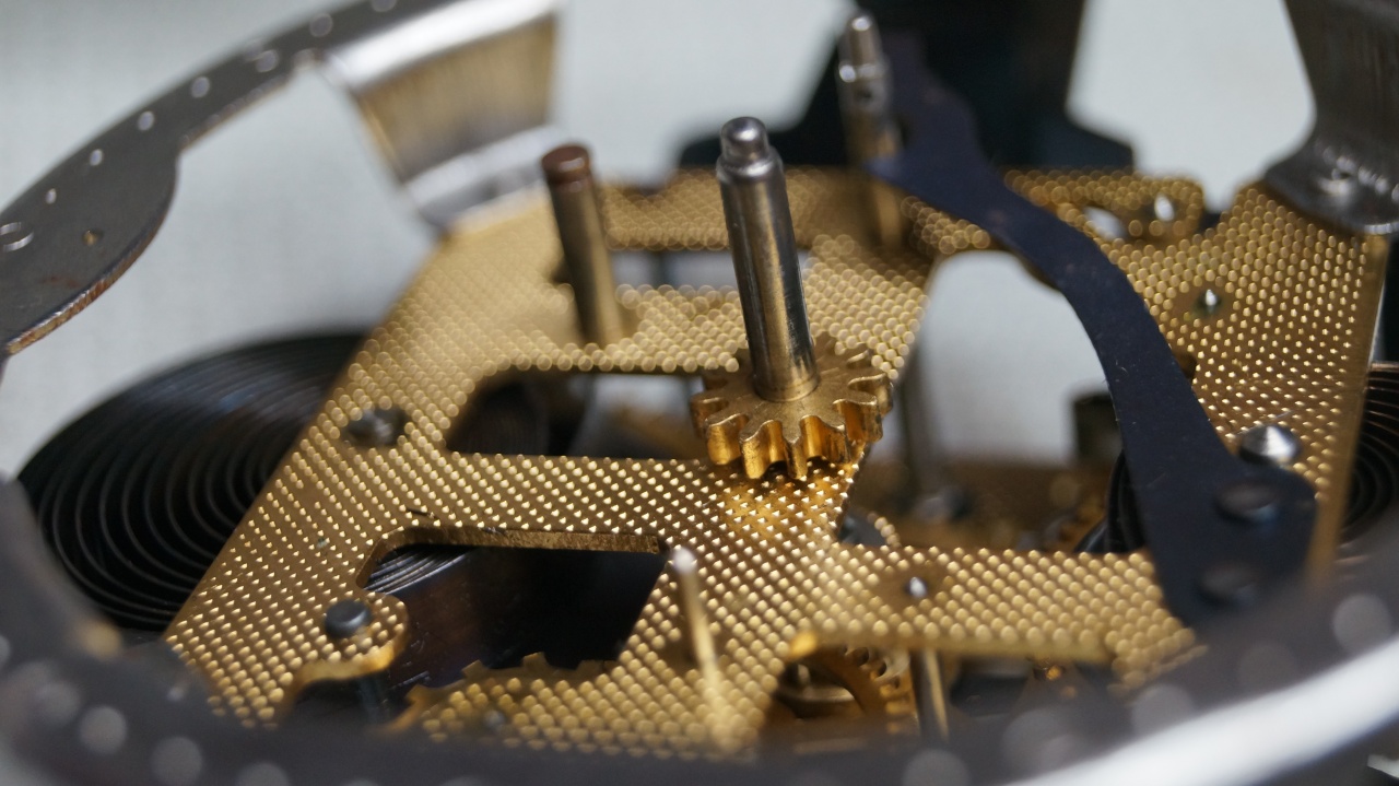 Пытаться снять шестеренку подсовывая в зазор между ней и платиной неподходящий инструмент - не рекомендую. Латунь шестеренки мягкая и, поэтому есть большой риск смять зубцы.