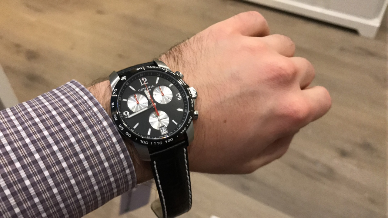 Информация для эстетов - стрелка хронографа бьёт точно в метки.