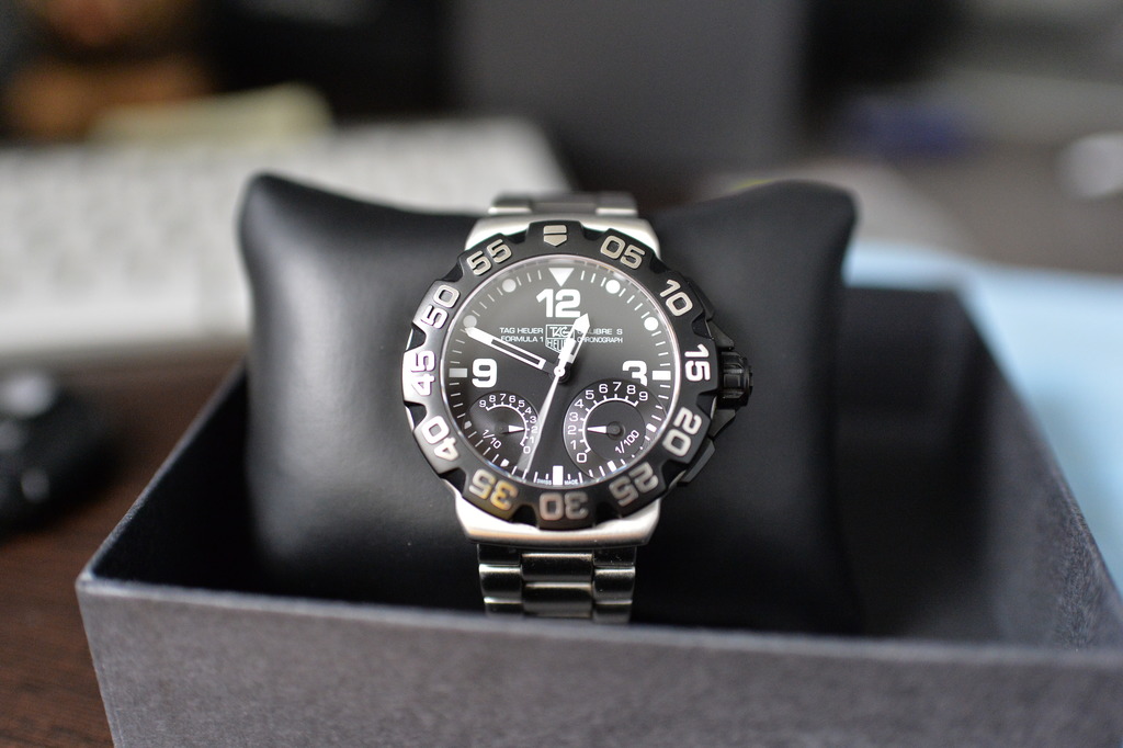 Продам на мой взгляд самые брутальные часы из линейки Formula 1! Часы электромеханические, разработанный и запатентованный TAG Heuer эксклюзивный механизм calibre s. Два ретроградных счетчика указывают: в режиме "ВРЕМЯ" дату (левый счетчик первую цифру, правый – вторую), в режиме "ХРОНОГРАФ" левый счетчик указывает 1/10, а правый – 1/100 доли сек. Переход из одного режима в другой осуществляется простым нажатием на заводную головку.