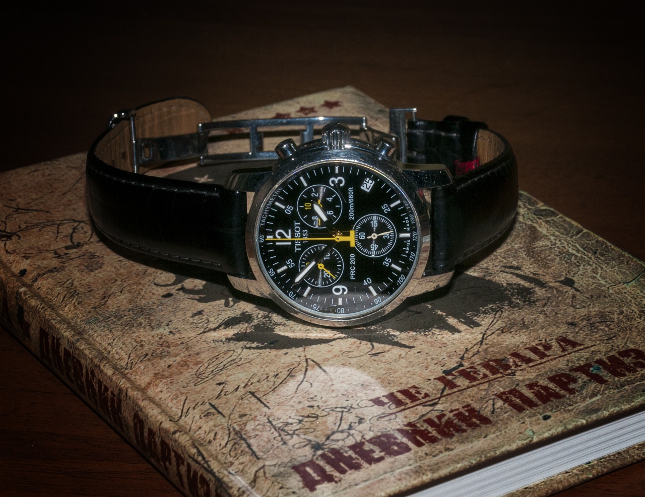 Из минусов - хронограф работает из рук вон плохо, все стрелки крутятся, но как то сами по себе. Да и не больно-то он и нужен, если честно. За все время использовал его буквально пару раз. Большая желтая стрелка - без проблем. Можно и ей секунды отсчитывать.