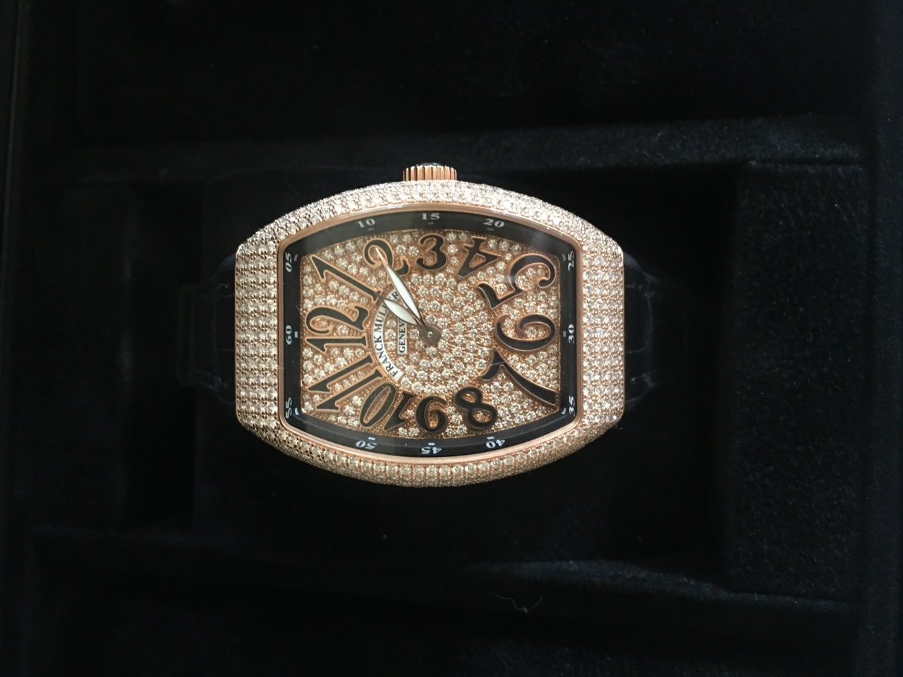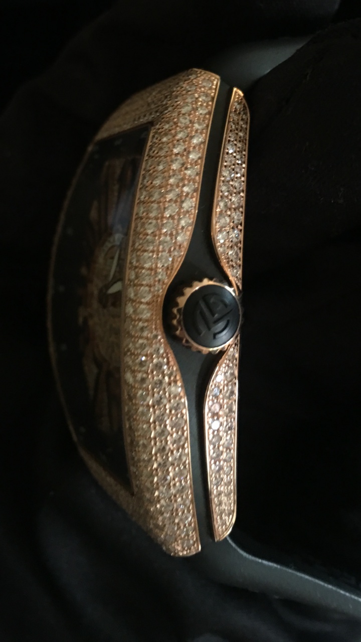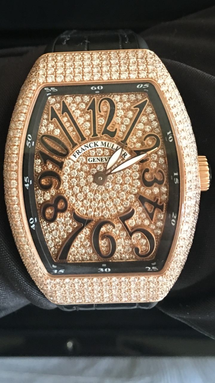 Franck Muller в 2017 году презентовал свою роскошную модель Vanguard Lady Quartz 35 mm Rose Gold Diamond Pave V 35 QZ D CD 5N.NR DIAM.NR 5N, которая была выполнена из драгоценного розового золота, полностью украшена бриллиантами, включая корпус, безель и даже поверхность циферблата.