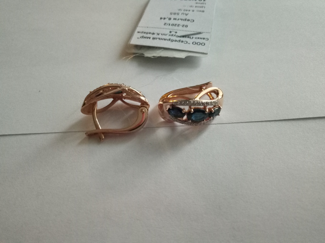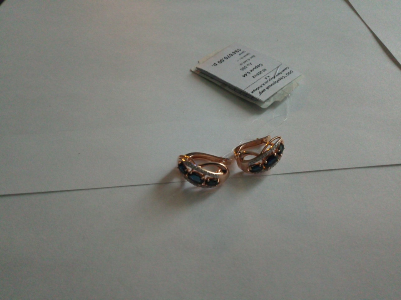 Новые золотые серьги 585 пробы, украшены бриллиантами и черными сапфирами, куплены в 2017 году. 45000 рублей