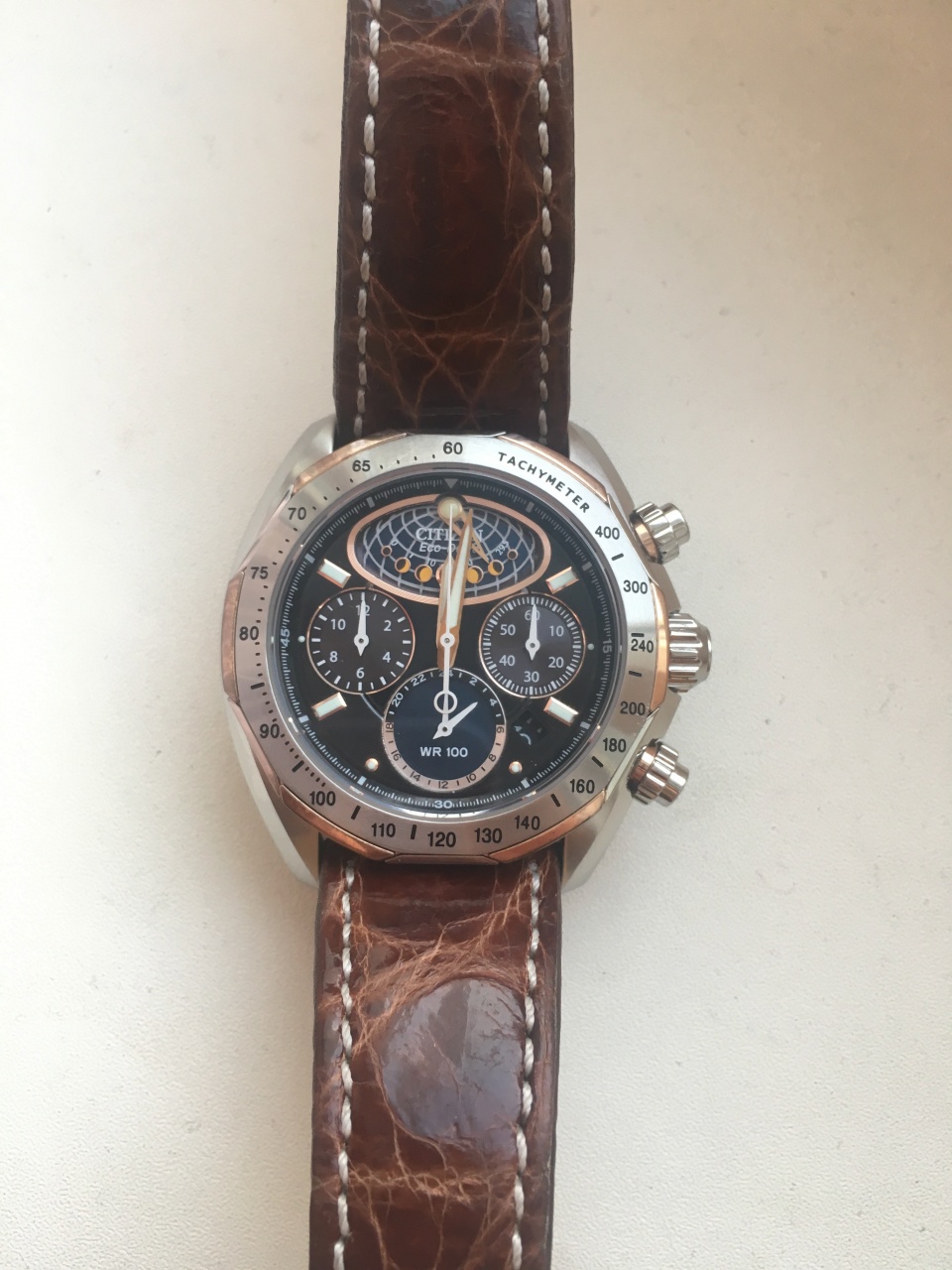 Друзья, всем доброго времени суток! Продам хронограф - Citizen Signature. Модель очень красивая, притягивает взгляд, брал для себя, выиграл на аукционе, по такой цене такие часы не найдете. Часы не носятся лежат в коробке. Состояние часов отличное, точность хода идеальная, система Eco-Driv, нет надобности в замене батареек, стекло сапфир с двойным антибликом - эффект отсутствия стекла, ремешок кожа аллигатора. На руке смотрятся идеально. Могу выслать по России, опыт пересылки имеется. Часы долго будут радовать нового владельца!