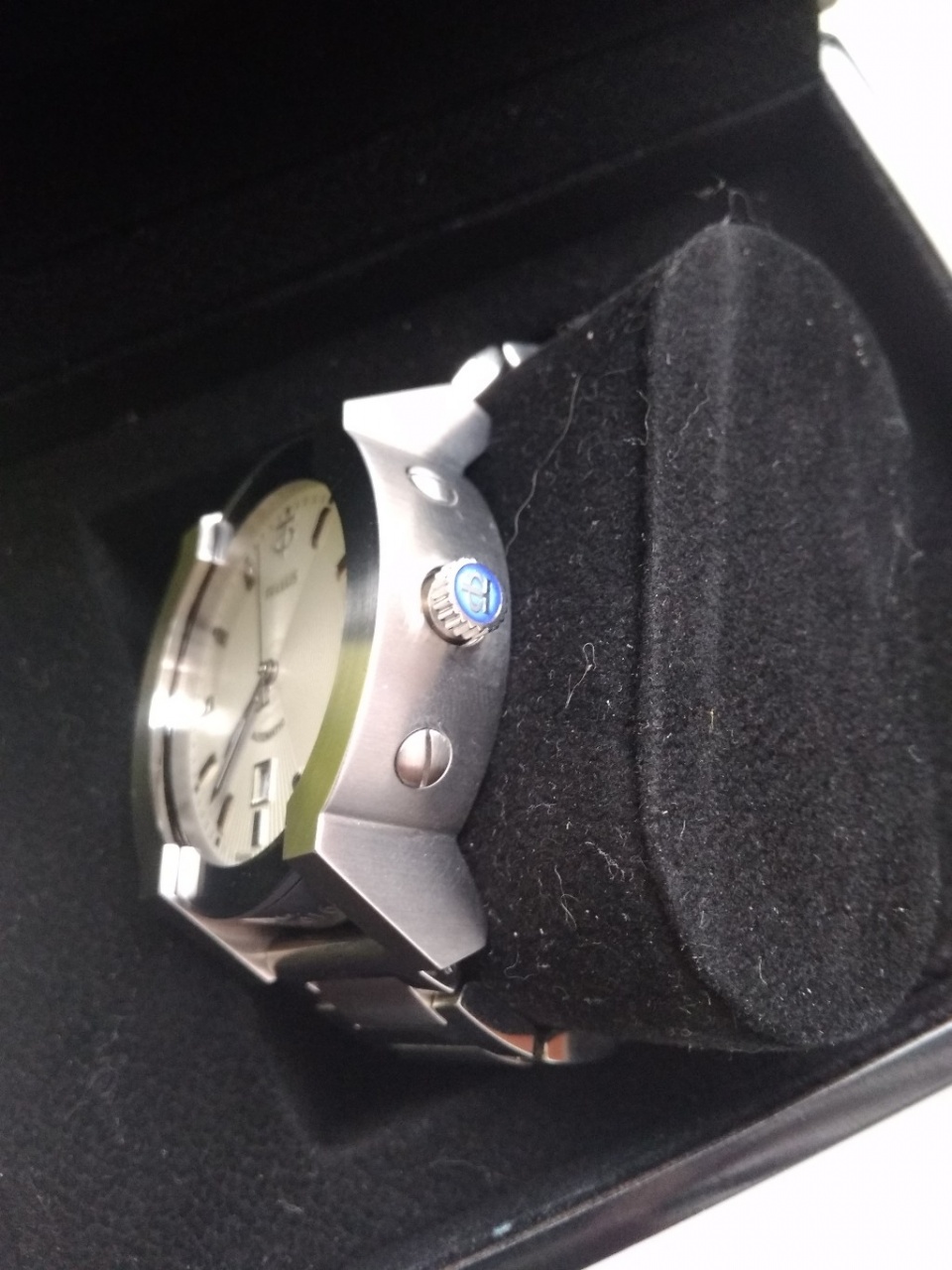 "С плохое" - На заднем стекле небольшой скол от предыдущего хозяина, благо корпус часов предусматривает лёгкую его замену, но мне не мешало, я не стал заморачиваться. Царапинка на скобке в районе 2 часов.