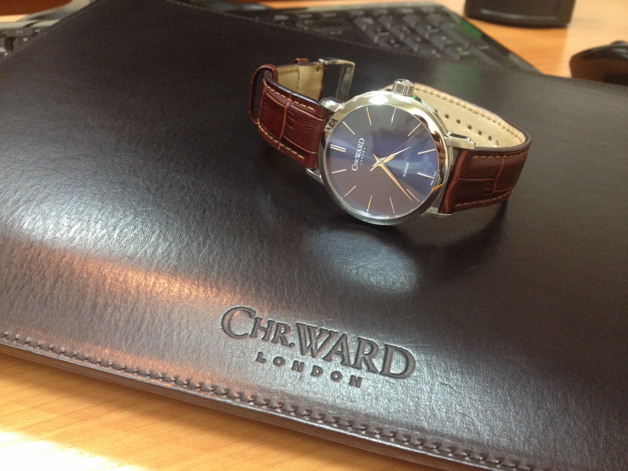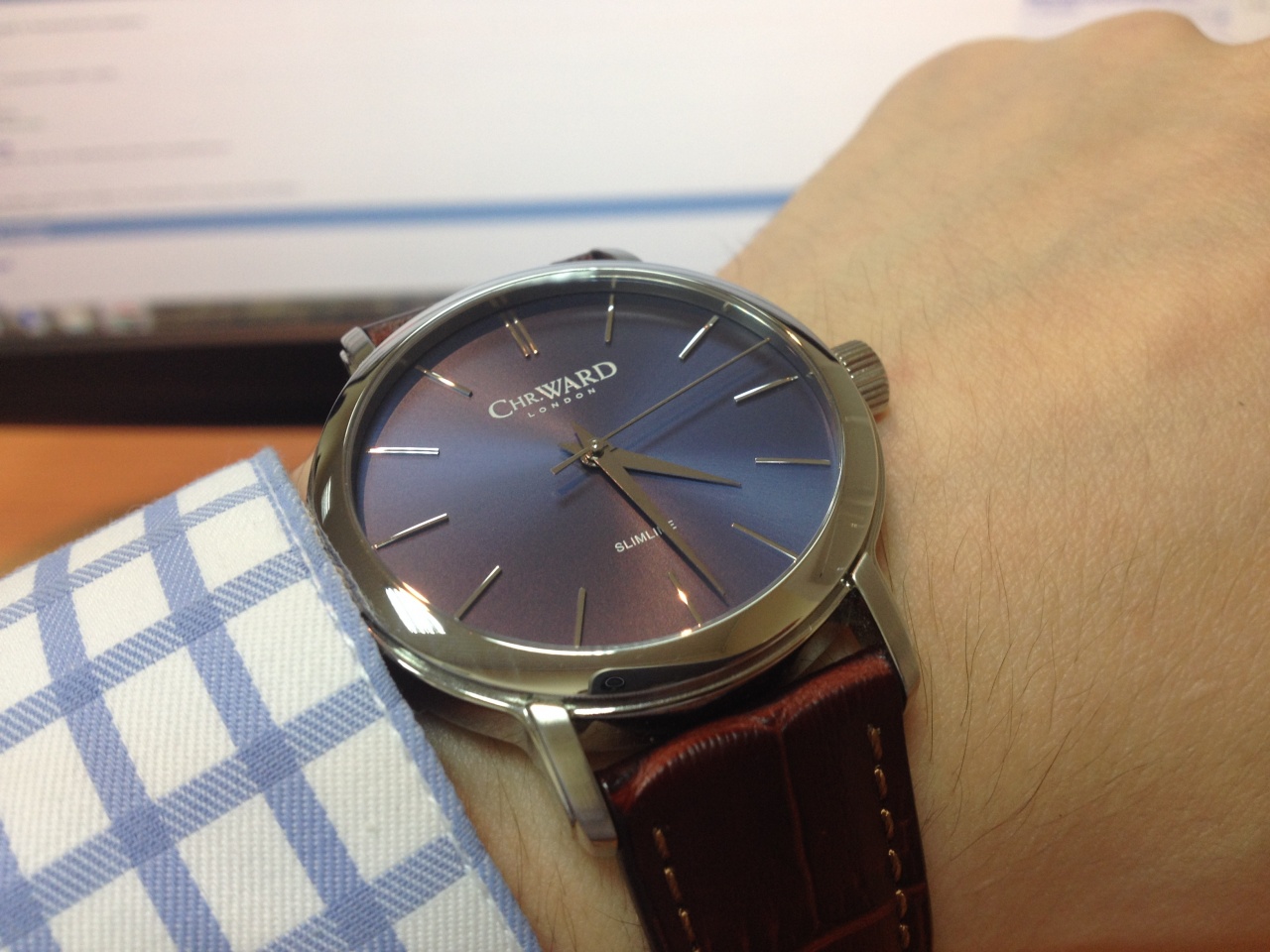 Классические швейцарские часы, от известного производителя Christopher Ward, с уникальным серийным номером. В часах установлен сверхтонкий швейцарский механизм с ручным заводом, два сапфировых стекла (переднее с антибликовым покрытием), циферблат часов выполнен в синем цвете со специальной обработкой (переливается на солнце), часовые метки накладные.