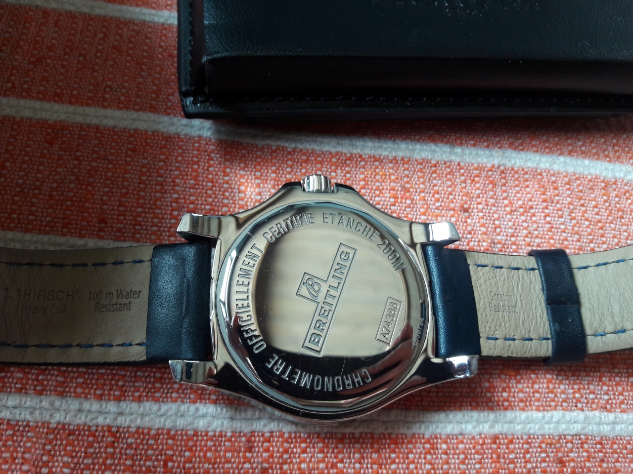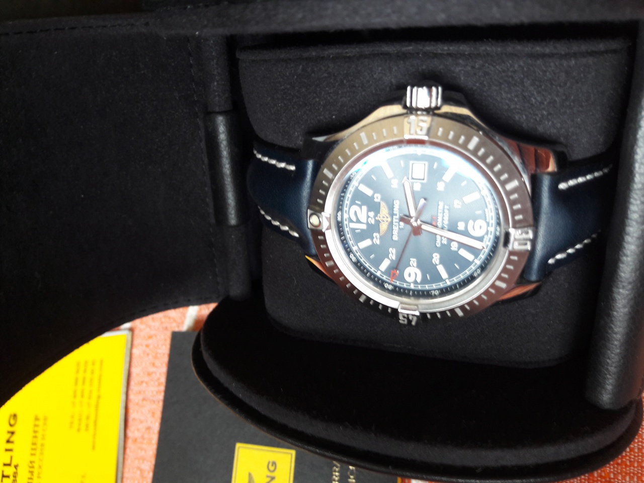 Часы в состоянии, близком к новым, на руке были не более 10 раз. В воде не были. После покупки часов докупил водостойкий ремешок Hirsch Heavy Calf синего цвета с белой строчкой в тон часам, в настоящий момент часы на этом ремешке. Родной каучук с родной баклей отдам в придачу.