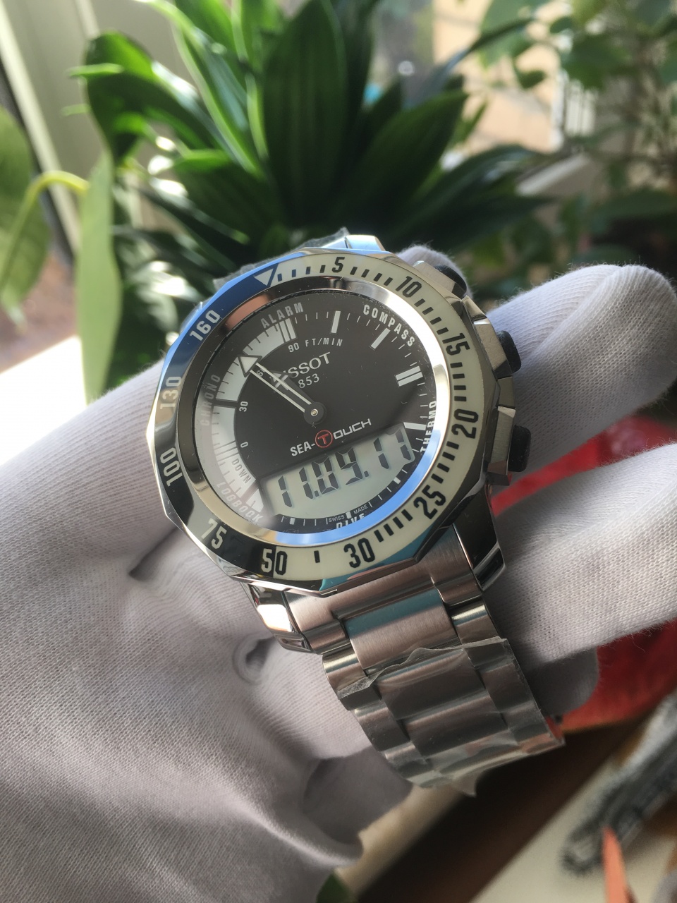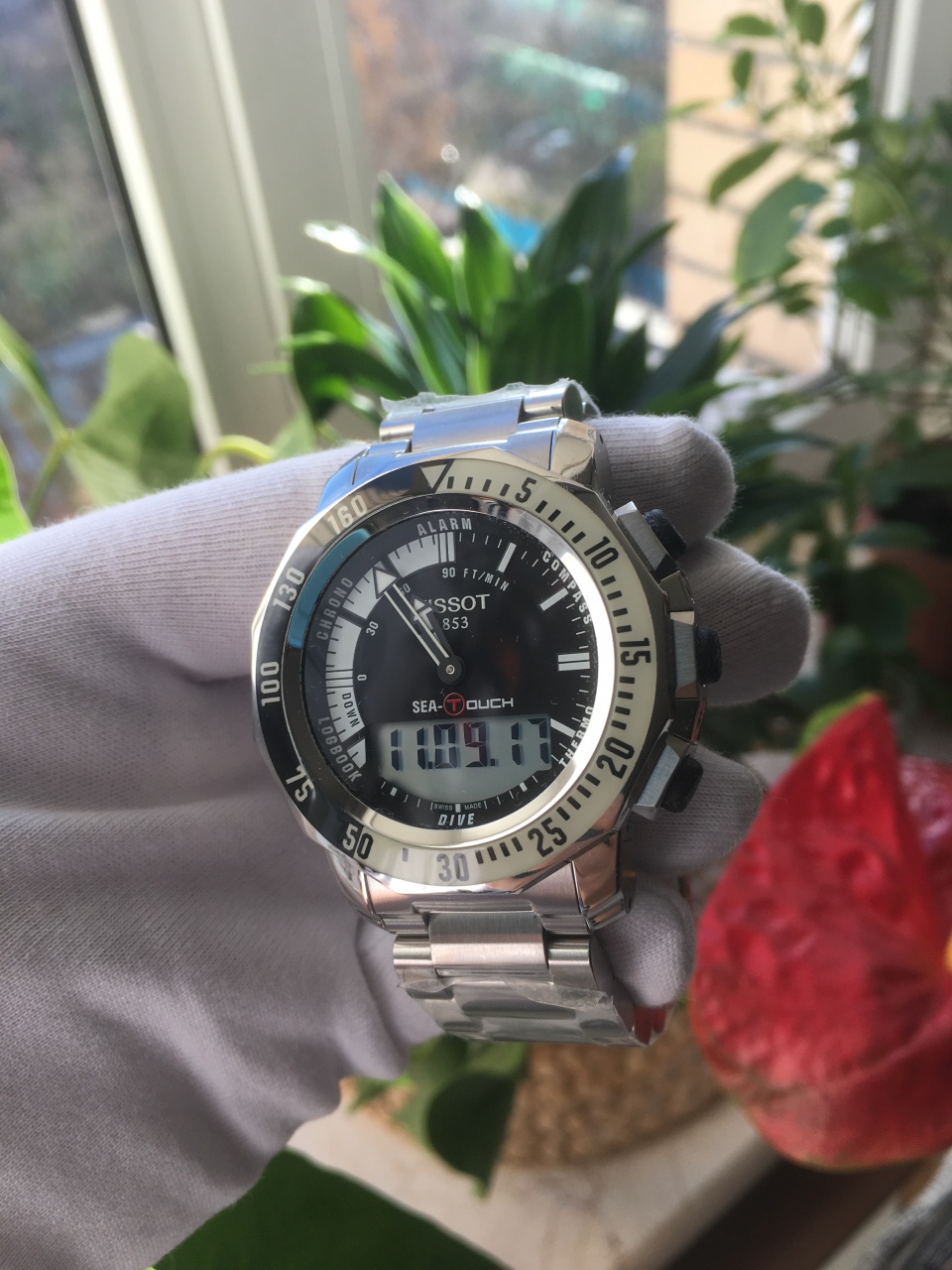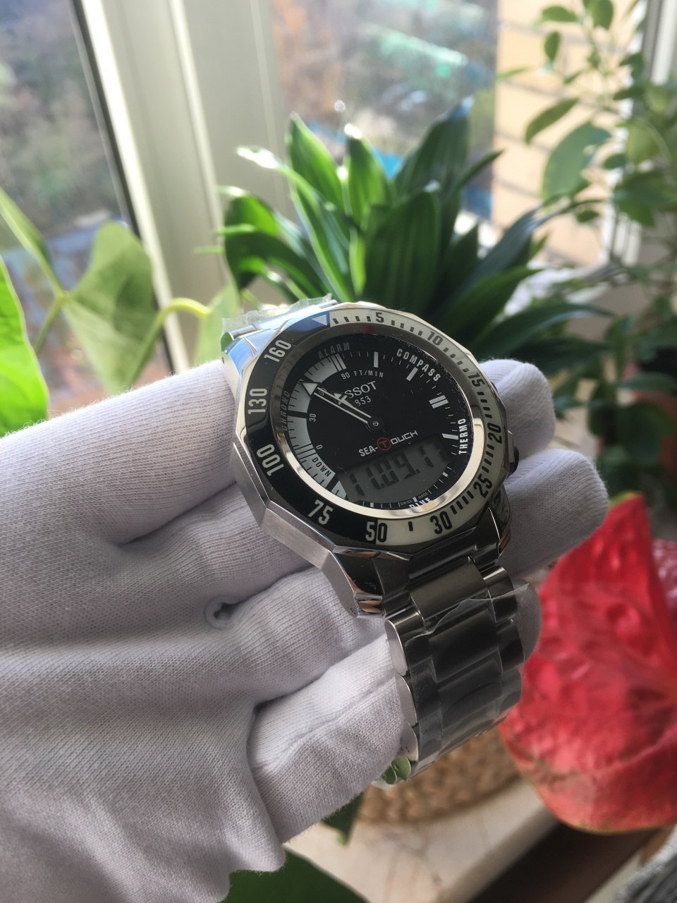 В продаже часы самого популярного швейцарского бренда Тissot. В данной модели имеется большое количество функций, которые могут заинтересовать самого требовательного покупателя. Например: будильник, компас, термометр, режим погружения, дневник дайвера, хронограф...