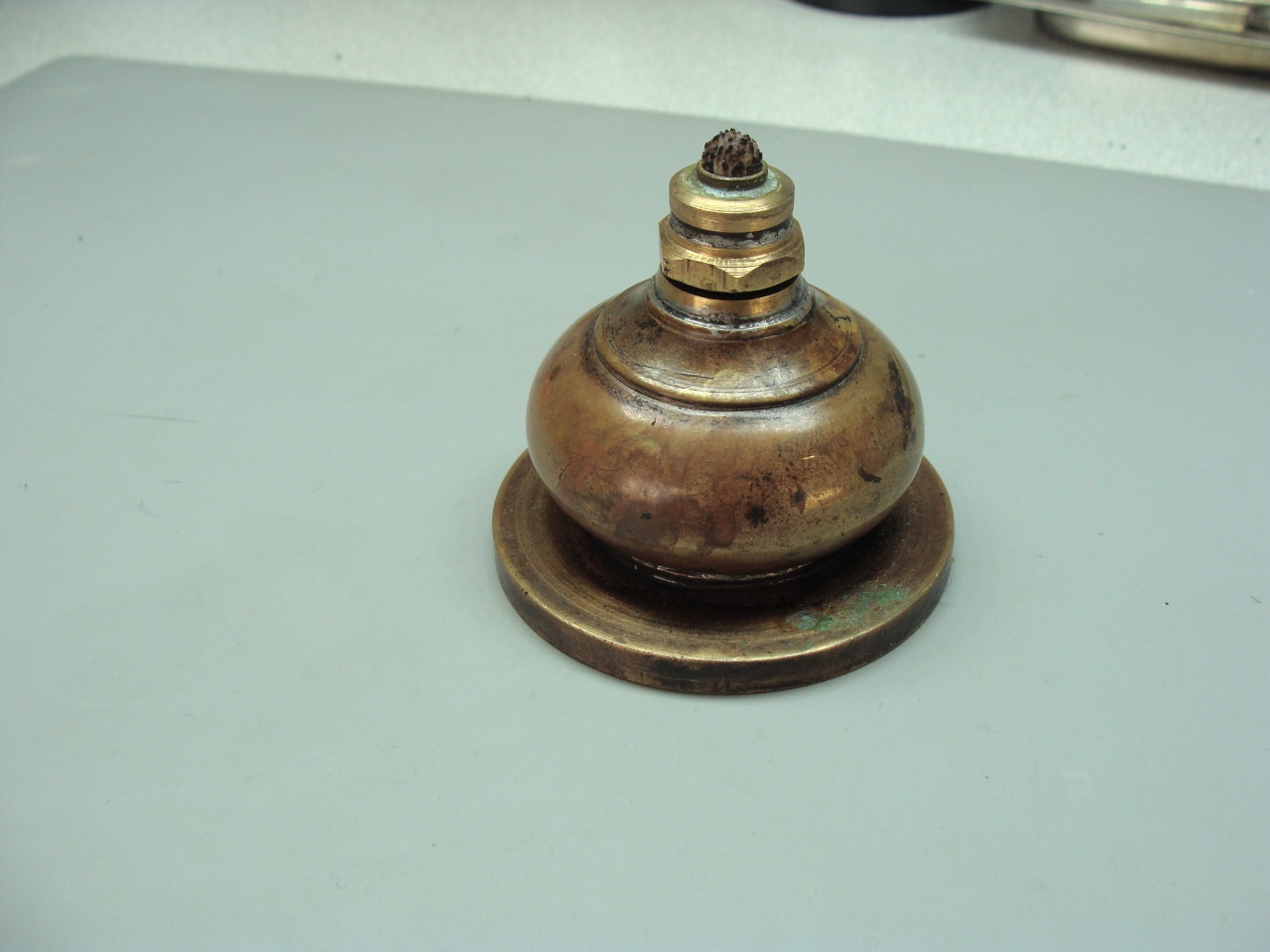 Если оставить основание и перевернуть саму баночку то ручка и есть. Конечно, фитильная часть сделана мною из переходника 3\4--1\2 дюйма и в тело баночки внедрена ответная часть от 1\2 дюйма. Все припаяно мягким припоем.