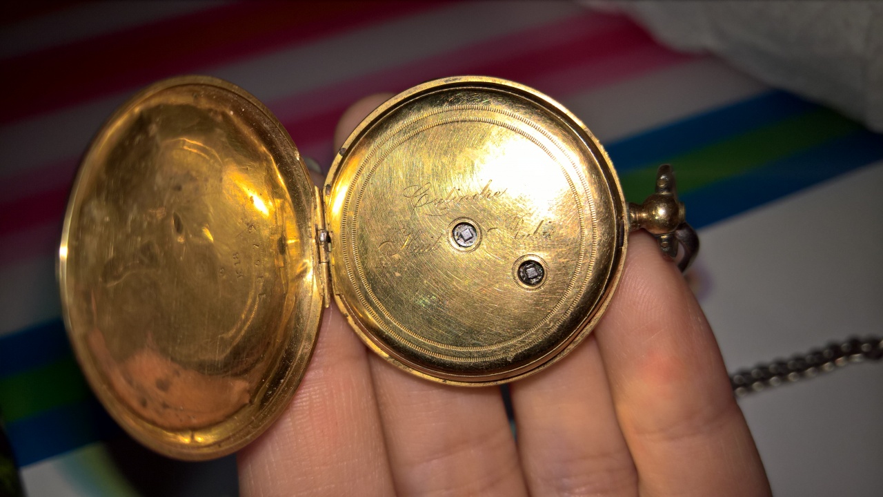От прадедушки достались золотые карманные часы на цепочке с ключом