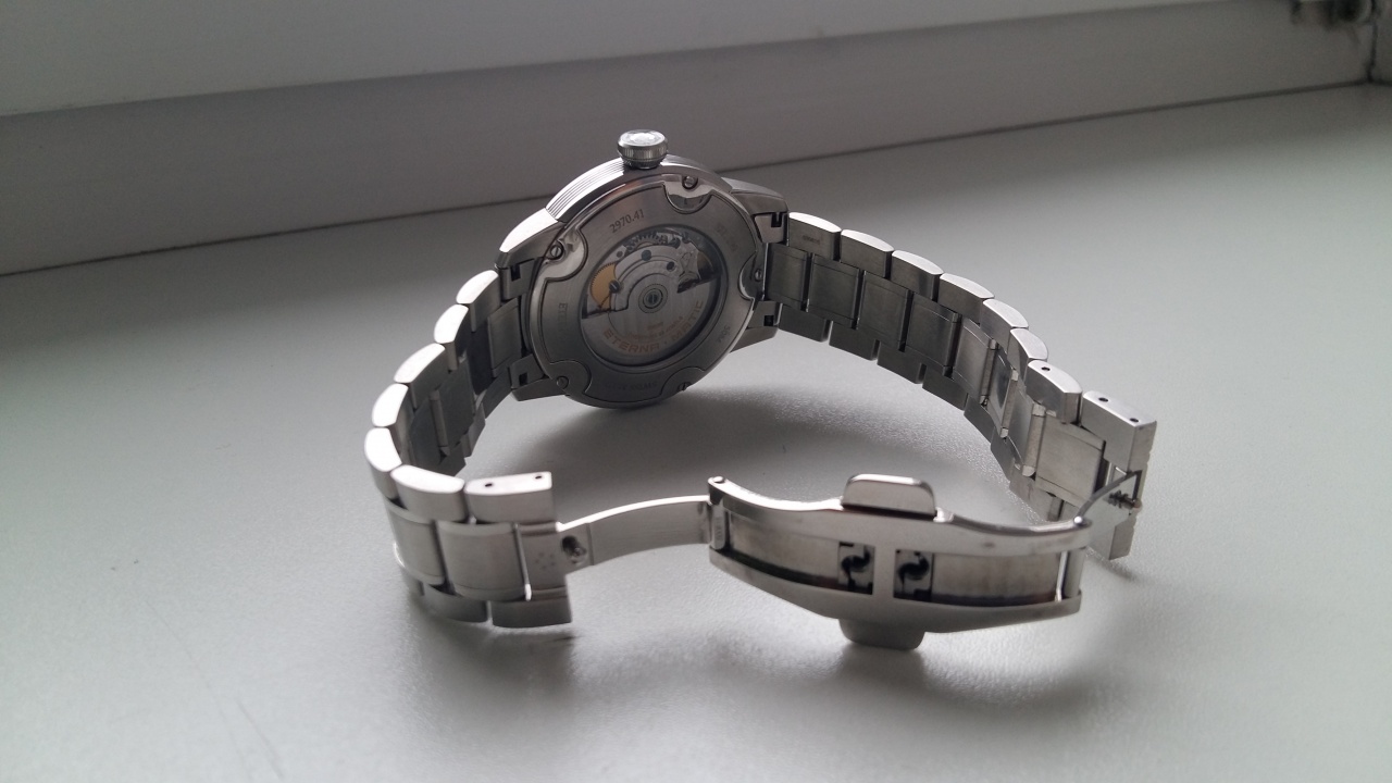 Браслет: стальной, снабжен раскладной застежкой на кнопке