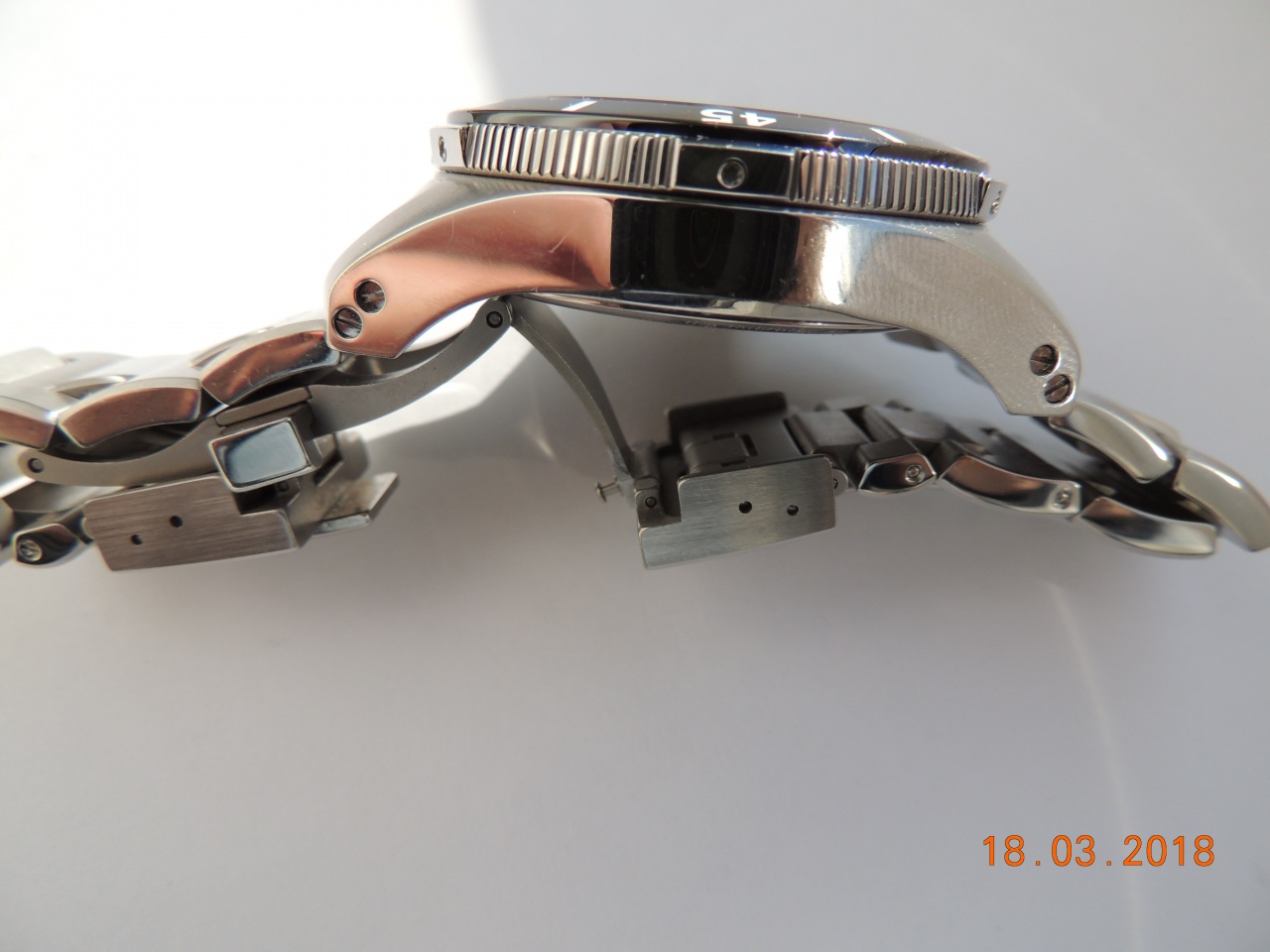 Часы куплены первым владельцем-форумчанином летом 2016 года. Я купил их на форуме при очередном новогоднем обострении ЧБ в январе 2018 и надел от силы раз 20, благо сет позволяет. Спустя какое-то время оказалось, что не рассчитал, и если и не по размеру, то уж точно по весу (208 г) они все же тяжелы для моего запястья