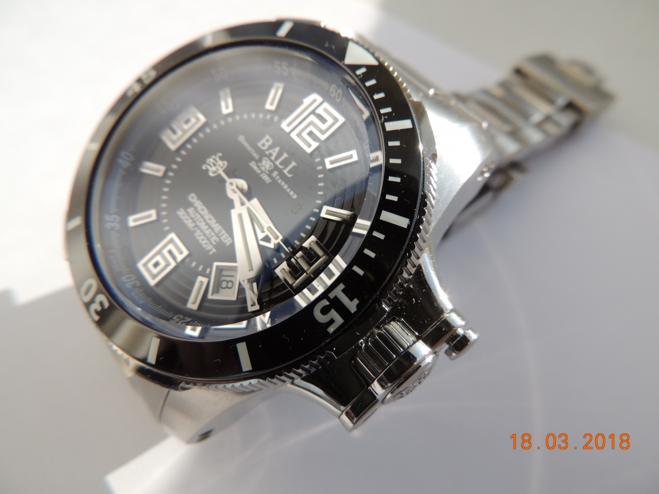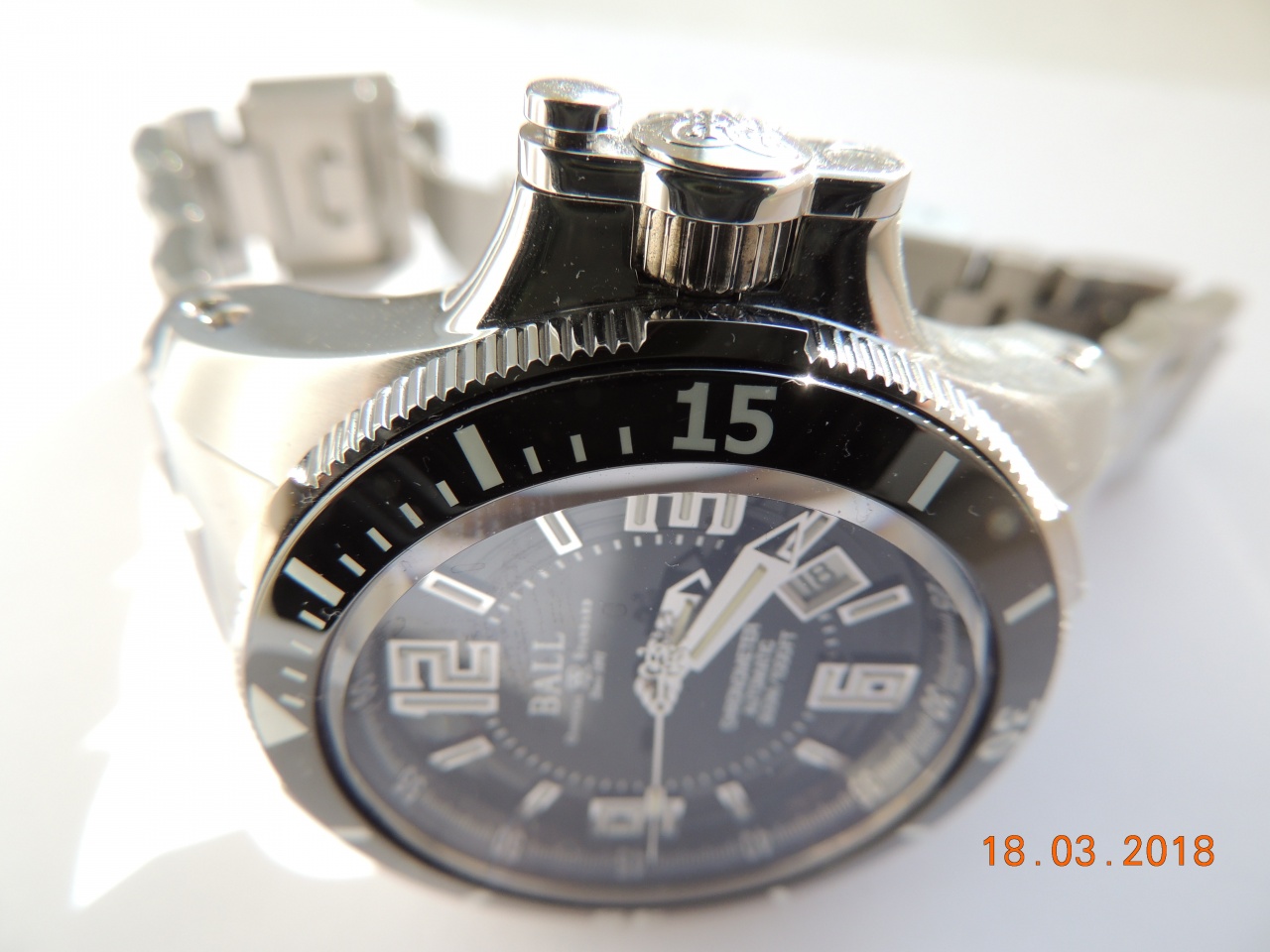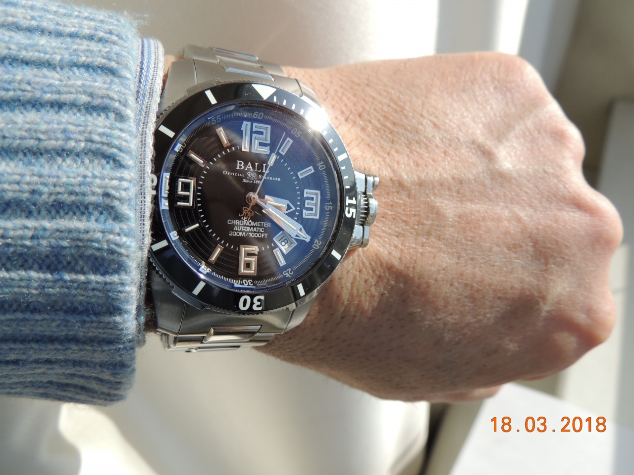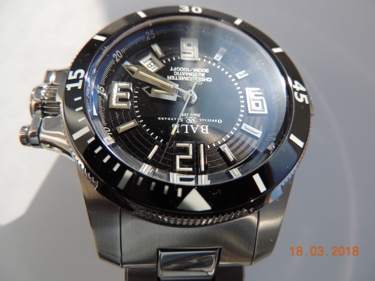 Внутри - наинадежнейший механизм на базе ЕТА 2892-2, доработанный Ball до сертифицированного хронометра. Мой экземпляр показывает стабильно -1.6 сек в день (-37 сек за 23 дня)