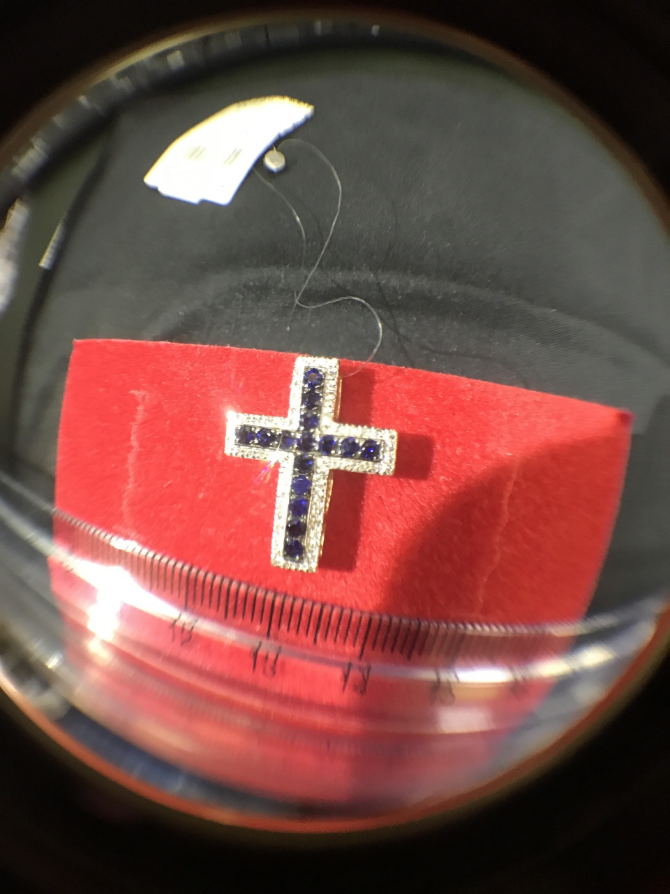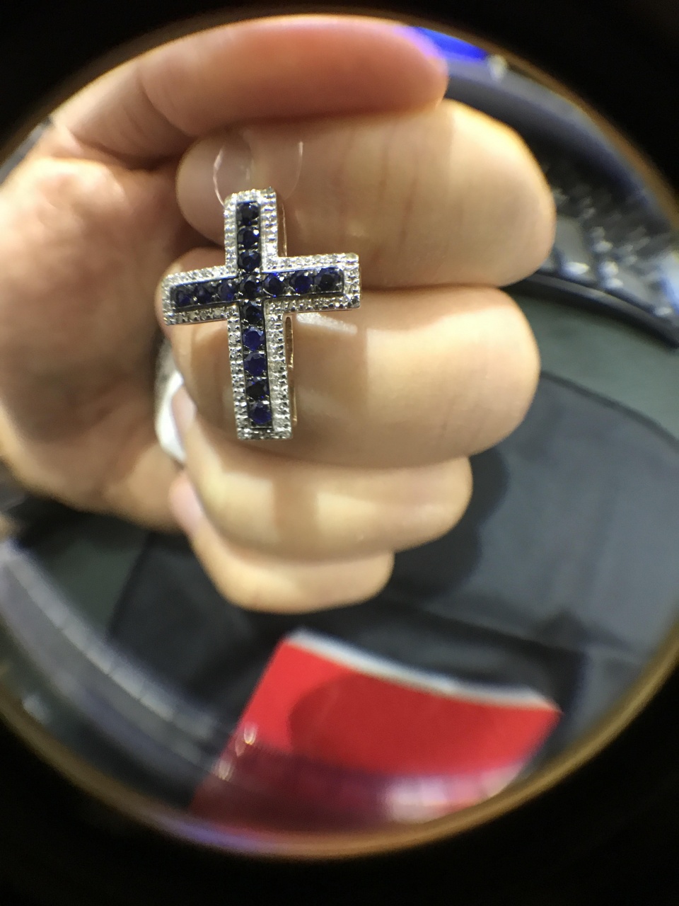 Подвеска - крест розовое золото с бриллиантами 0,13 кар. и сапфирами 0,426 кар.