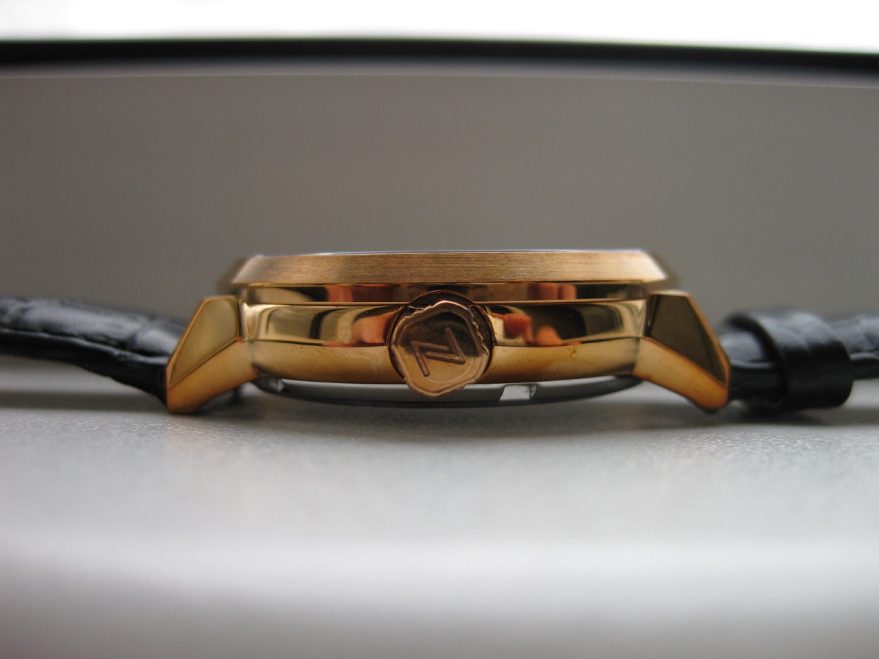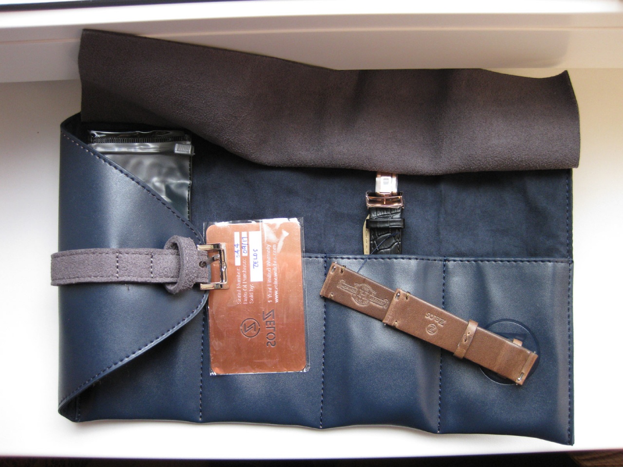 Часы поставляются на черном ремешке с крокодиловым принтом. Дополнительно в комплекте идет коричневый состаренный ремешок фирмы Horween с системой быстрой замены ( Quick release).