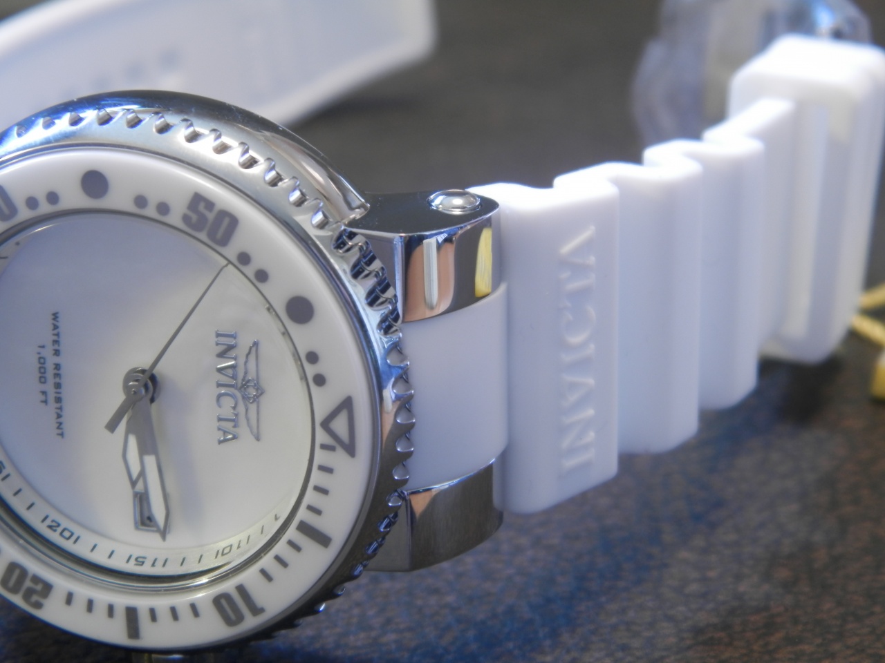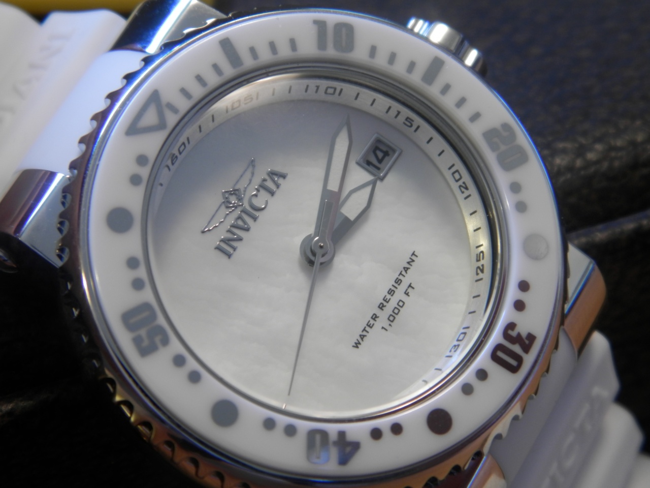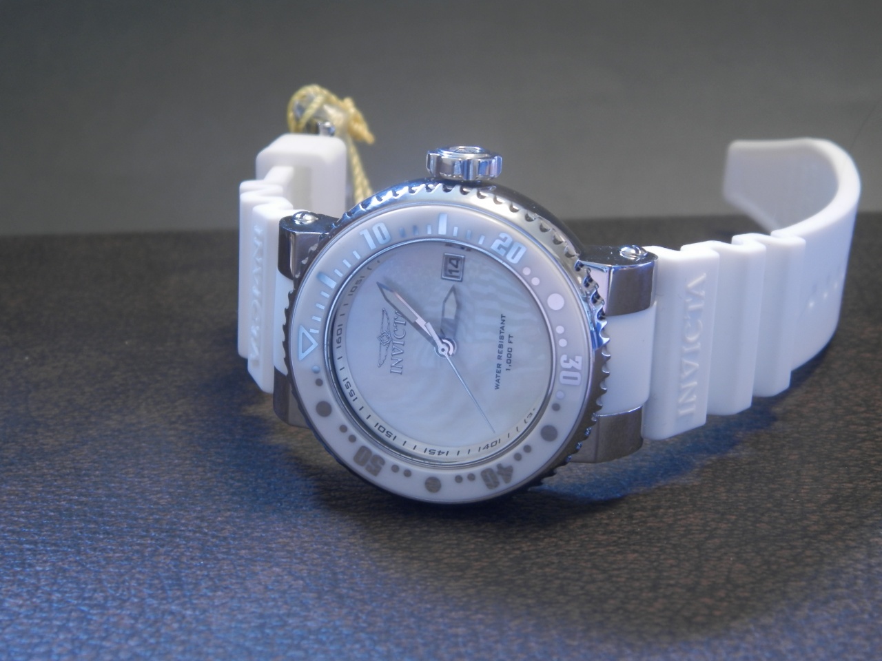 Жен. Invicta Pro Diver ,перламутровый циферблат,керамический безель, 40 мм, 300M,белый силикон