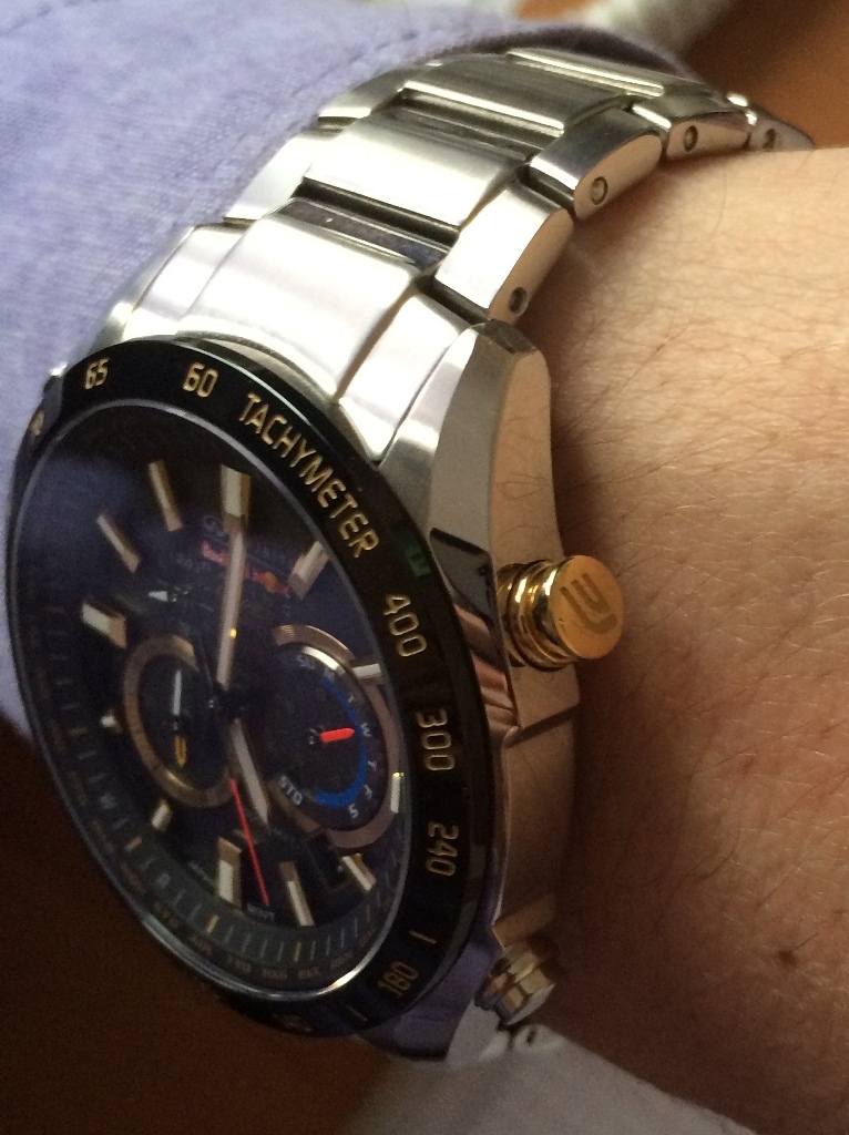 Покупал в WorldofWatch. Носил несколько раз. Использовал как хронометр для механических часов. По точности когда не проходит синхра: погрешность максимум - 2 сек./месяц. Лидер в своей линейке: сапфир+ знак на цифере F1 Infiniti Red Bull Racing. Пересылка Почтой России на покупателе. Оплата на карту Сбербанка.