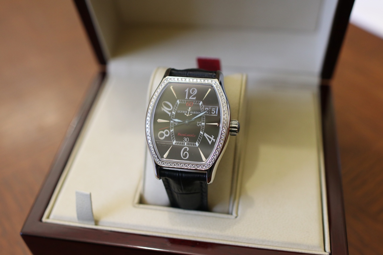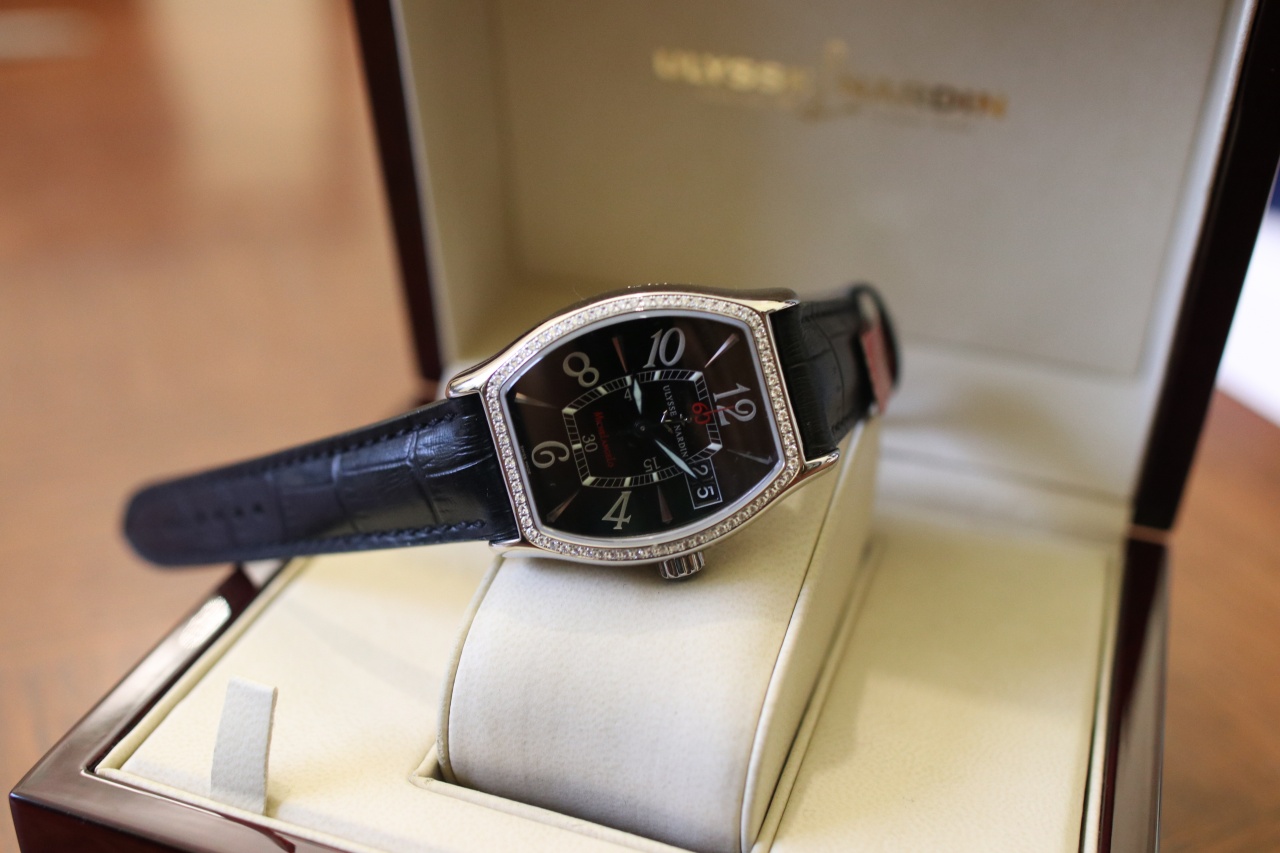Отличный женский Ulysse Nardin! Состояние B только из за не оригинальной застежки! Часы после полной полировки и ТО! Стекло без сколов и царапин! Бриллианты невероятно дополняют общий дизайн часов! В подарок идет подарочная коробка! Новый ремешок