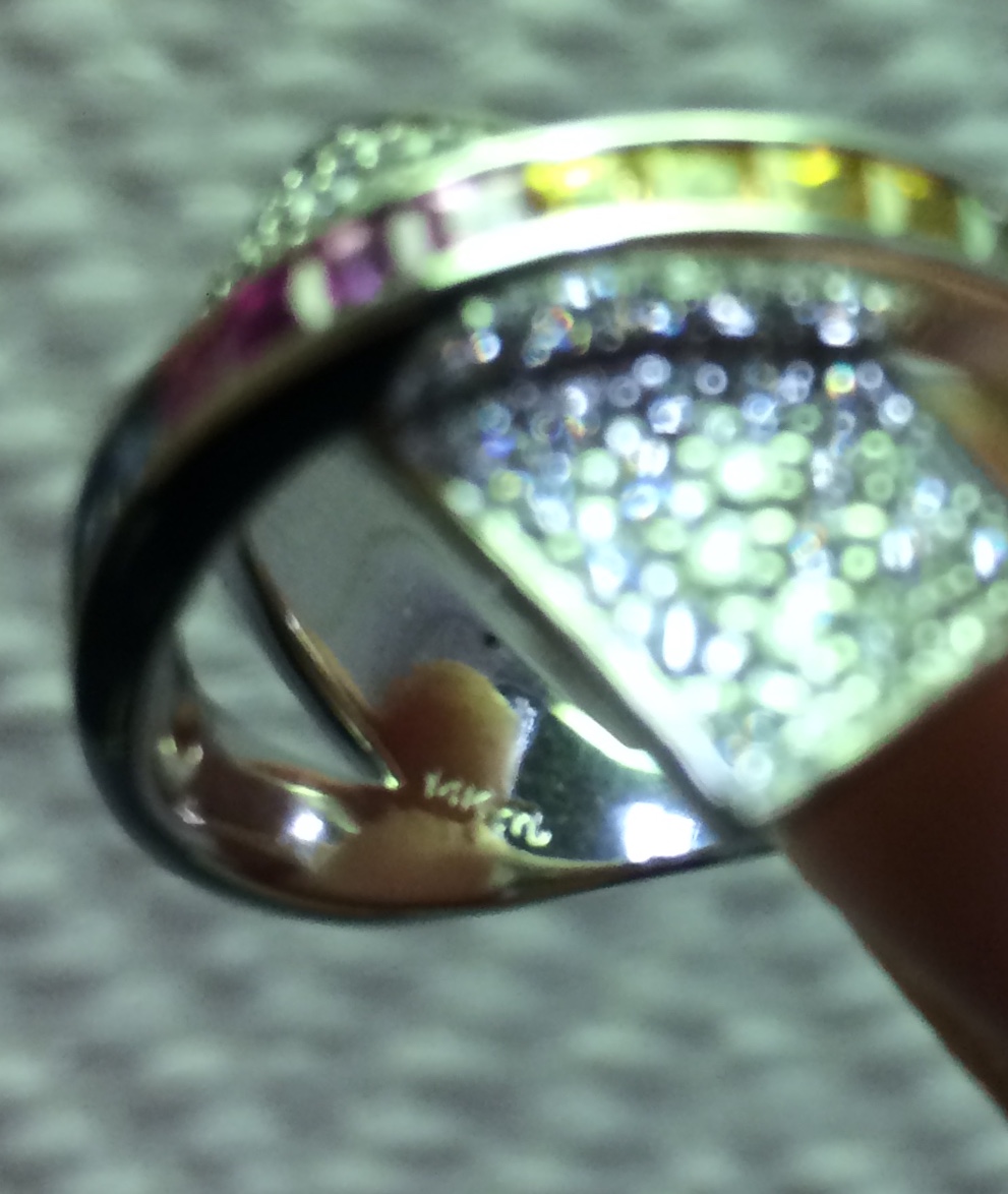 Кольцо 14 ct, размер 19/19,5 цветные сапфиры и бриллианты