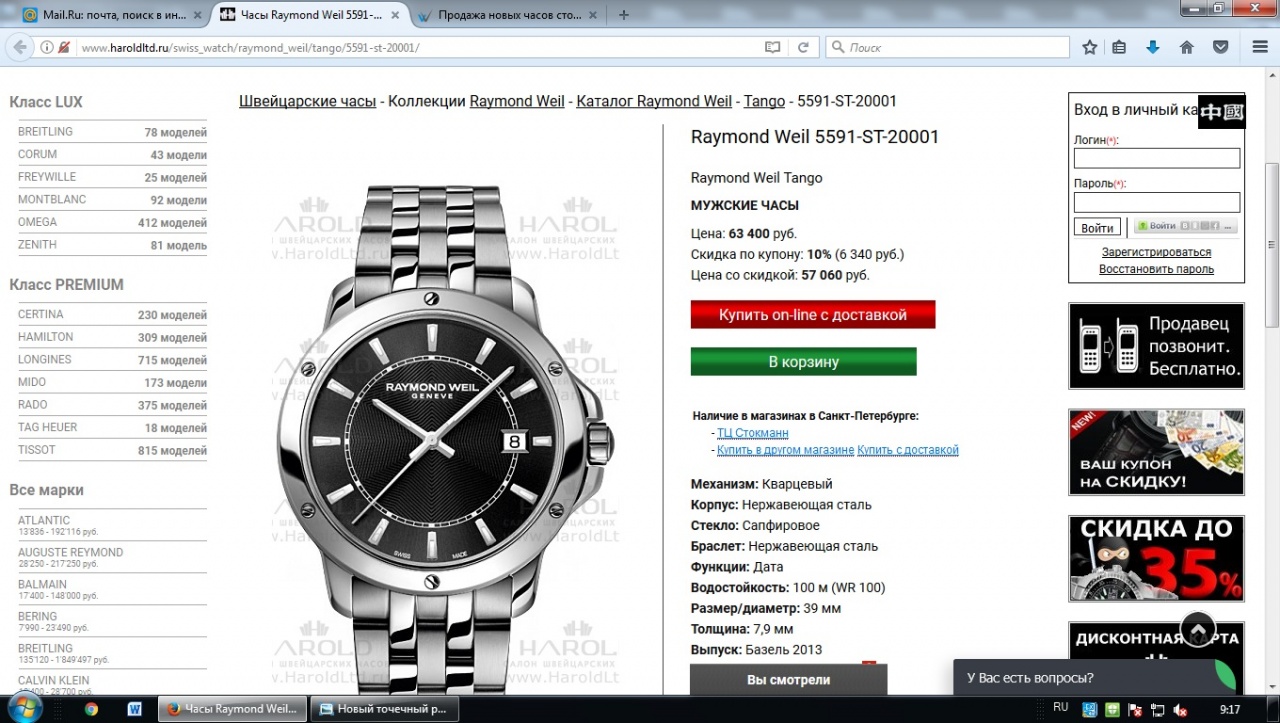 Raymond Weil Tango / Sale- 60 % OFF / браслет / WR 100 - Часовой форум Watch.ru