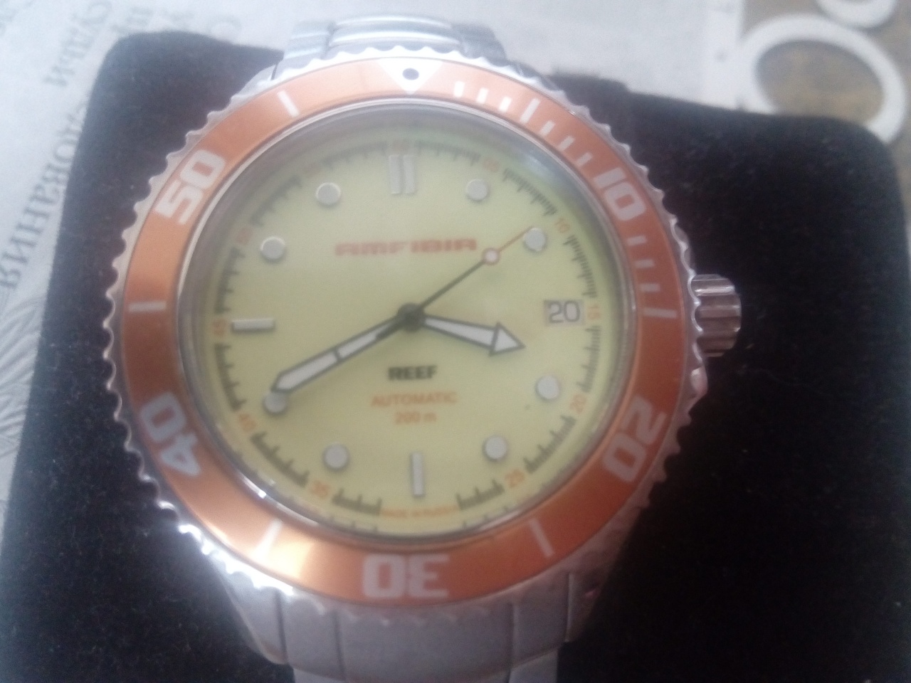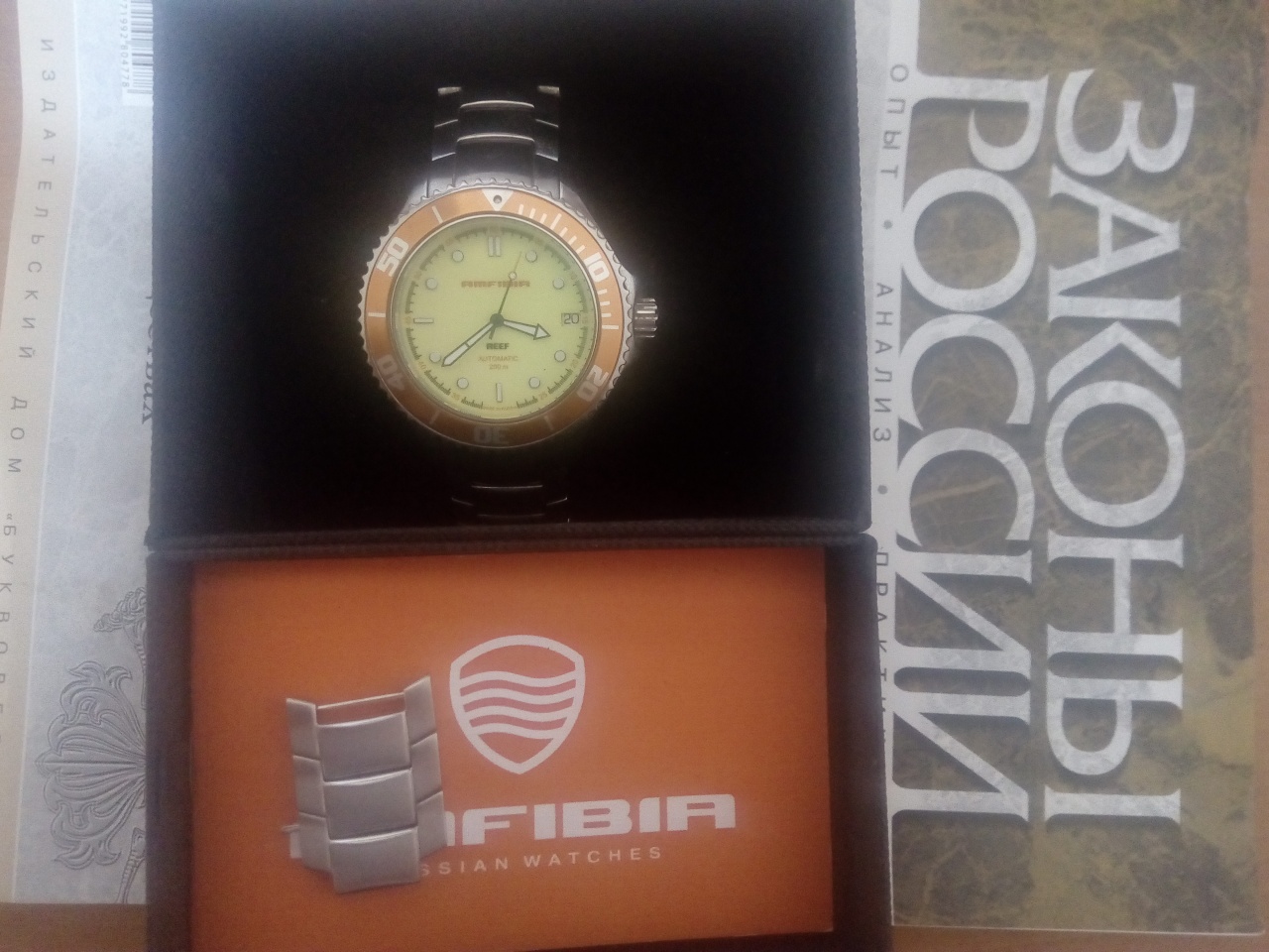 На звеньях браслета и застежке есть царапины и потертости. На цветной вставке безеля есть царапины в районе меток 0, 20-25 и 45. К сожалению, на мой телефон очень сложно заснять эти недостатки, но они есть. Точка с люмом на 0 часов отвалилась. Поэтому очень желательна продажа при личной встрече, что бы была возможность все внимательно осмотреть.