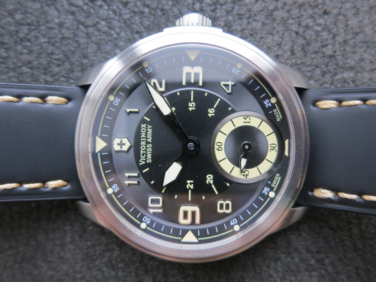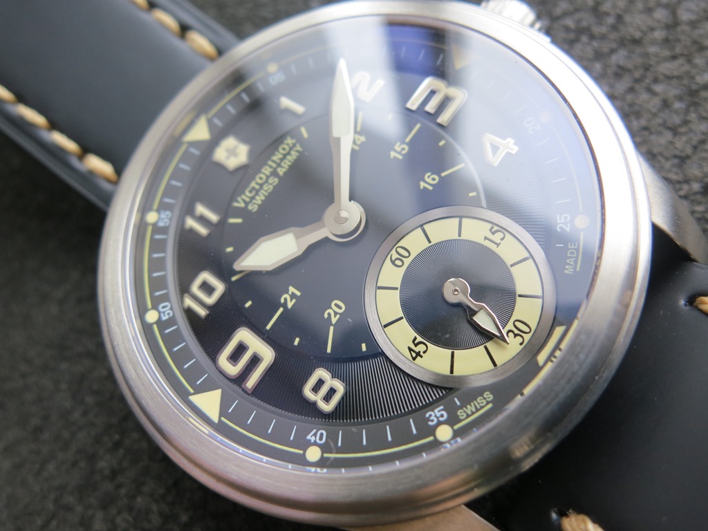 Механические часы на калибре Unitas 6498-1 (ручной завод). 17 камней. Секундная стрелка вынесена на отдельный циферблат. Прозрачная задняя крышка. Люминесцентные стрелки и метки. Сапфировое стекло с антибликовым покрытием. Корпус часов выполнен из нержавеющей стали 316L. Кожаный ремешок. Водозащита 100WR. Диаметр корпуса 44 мм, толщина 12,2 мм.