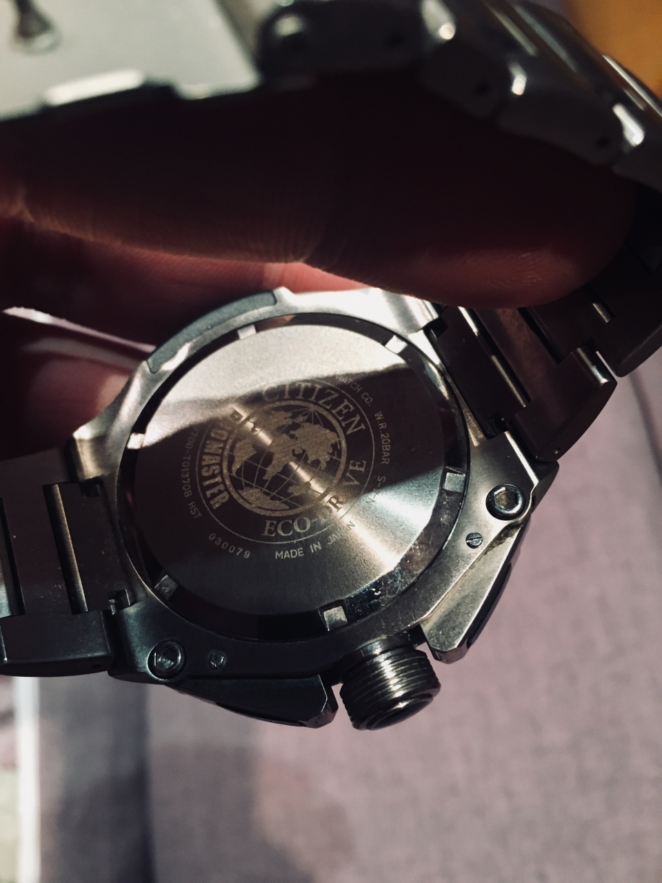 Многофункциональный хронограф с мировым временем и системой питания и подзарядки от солнечного света ECO-DRIVE в титановом корпусе. Состояние на 4+ по браслету царапки-титан) Точный кварцевый цифроаналоговый калибр U700 оснащенный системой питания и подзарядки от солнечного света ECO-DRIVE. • Система ECO-DRIVE - патентованная технология CITIZEN заключающаяся в размещении фотоэлементов скрытых под циферблатом и постоянно подзаряжающих аккумулятор часов. Продолжительность работы после полной зарядки аккумулятора при последующем хранении в темноте - 270 дней, в режиме сохранения энергии - до 7 лет. Система предупреждения о низком уровне заряда аккумулятора за 72 часа до критического уровня. Аналоговая часть: центральные часовая, минутная и секундные стрелки. Маленькие циферблаты: 1/100 сек - в положении 10 часов; 1/10 сек - в положении 12 часов; суточник - в положении 2 часа. • Мировое время с 43 предустановленными городами (включая Москву). • Автоматический календарь. • Хронограф с точностью измерения до 1/1000 секунды. Режим измерения RACE MODE - предуставновка протяженности круга и память 20 результатов прохождения и автоматический расчет скорости прохождения. • Таймер обратного отсчета. • Ежедневный будильник. • Электрическая подсветка. • Точность хода: не хуже +/-15 секунд в месяц. • Диапазон пригодных для использования температур -10...+50C. • Выпуклое сапфировое стекло устойчивое к царапанию. • Светонакопительный состав на стрелках. • Корпус из титана. • Водозащита до 20 АТМ. • Надежный браслетный замок с тройным сгибом.
