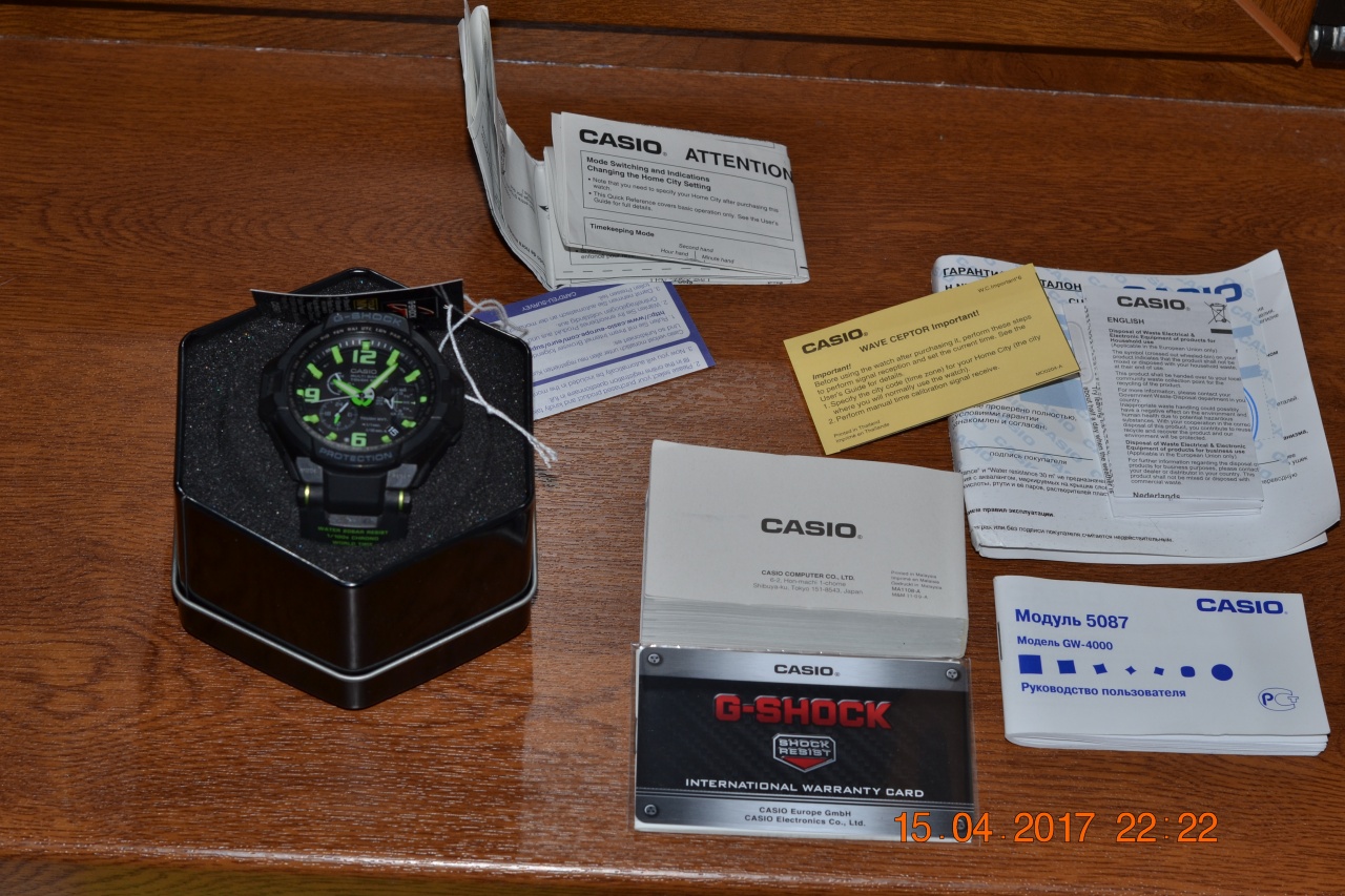 Продаю одни из интереснейших и бронебойных шоков на солнечной батарее, с зеленым цветом меток циферблата и стрелок, при этом сам циферблат больше тянет к графитовому. Часы в идеальном состоянии, куплены в 2016 году состояние поставил АА, хотя тянет ближе к ААА, так как практически не использовались, полный комплект, коробка+макулатура. Давно искал эту модель, но, к сожалению, механика вытеснила с руки кварц.