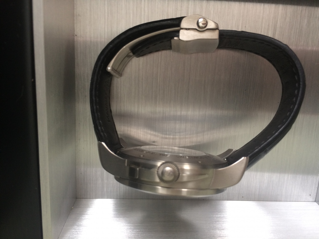 PT6108-TT031-391. Эта модель из серии Pontos получила свое название благодаря смещенной в сторону от центра циферблата, децентрализованной, оси часовой и минутной стрелок. Дополнительный циферблат, что расположен правее основного, показывает второе время и оборудован индикатором дня/ночи. Под ним, в зоне 6 часов, находится окошечко даты. Модель выпущена ограниченной серией в 999 экземпляров. 30 камней. Корпус титановый, 45 мм. Циферблат титановый, черный. Водонепроницаемость 50 м. Стекло - сапфир. Браслет кожаный, черный.
