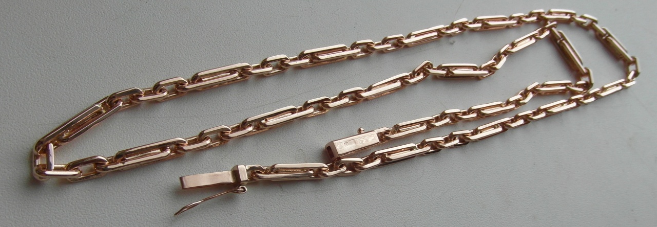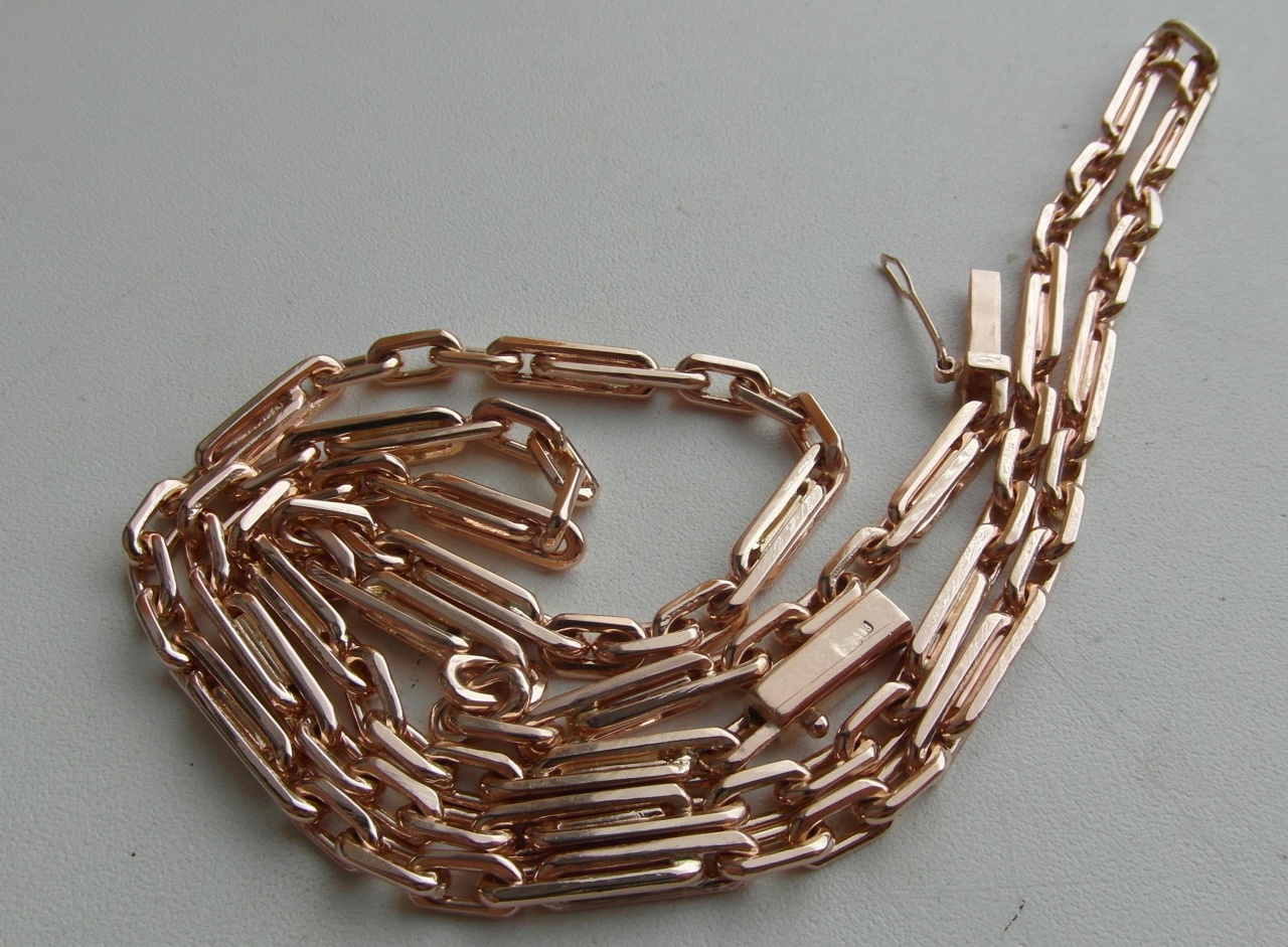 Шикарная золотая цепь якорного плетения с вытянутым звеном, вес 44.52 грамм, 61.5 см