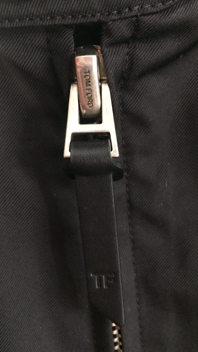 В продаже,новая мужская куртка-бомбер от люксового американского бренда TOM FORD .Крой прямой, свободный.Изготовлена из плотной гладкой ткани.Модель универсального черного цвета. Высокий воротник-стойка имеет застёжку на две пуговицы,снаружи фирменная кожаная нашивка.Куртка застёгивается на прочную металлическую молнию контрастного серебристого цвета с двумя крупными брендированными бегунками. Длинные рукава и низ изделия оформлены манжетами из плотного трикотажа в тон. Два прорезных кармана с диагональным входом снабжены клапанами на пуговицах. Подкладка частичная, только на плечах и в рукавах, выполнена из гладкого атласа в тон изделию. На внутренней стороне куртки располагается кожаный ярлычок с тиснением в виде названия бренда.