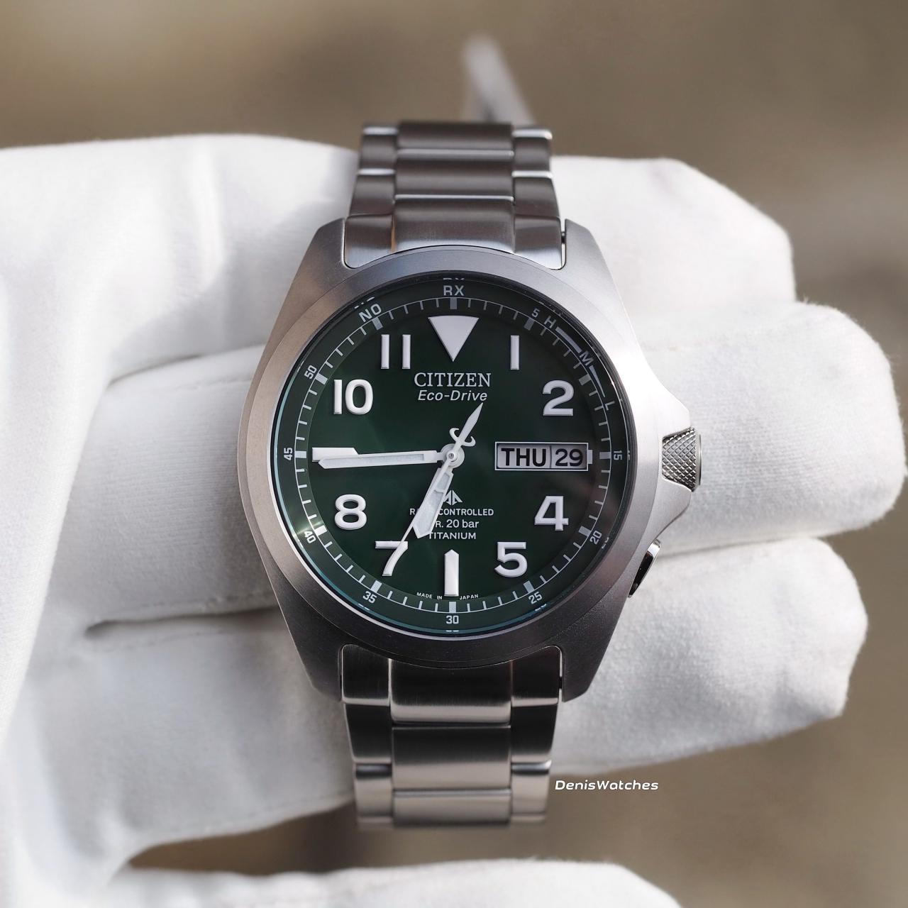 Популярная внутрияпонская милитари модель Citizen Promaster Land с зеленым циферблатом.