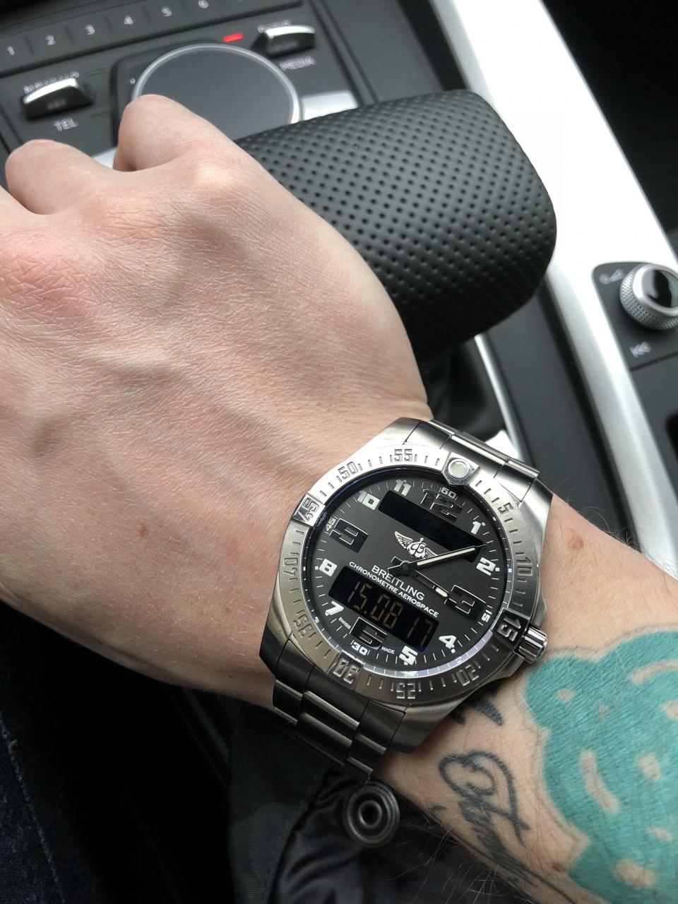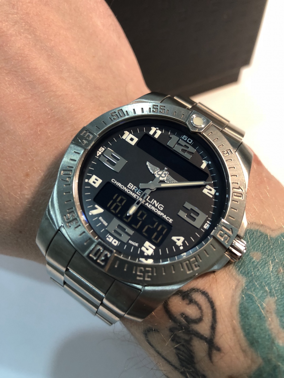 Новейшая интерпретация легендарной модели, этот электронный многофункциональный хронограф с матовым корпусом из титана воплощает мощный, динамичный и технический стиль. Он отличается особо простой и логичной системой управления. Достаточно просто повернуть, нажать или потянуть заводную головку, чтобы использовать весь набор функций, столь полезных для пилотов. Aerospace Evo также имеет чрезвычайно эффективную и совместимую с очками ночного видения систему подсветки дисплея.