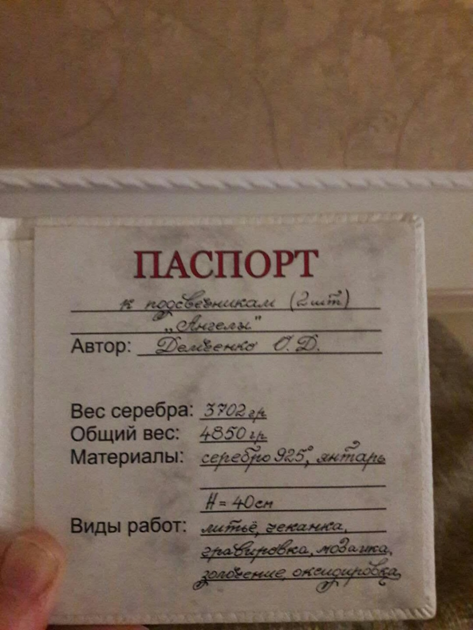 Авторские подсвечники(Серебро, янтарь, позолота)