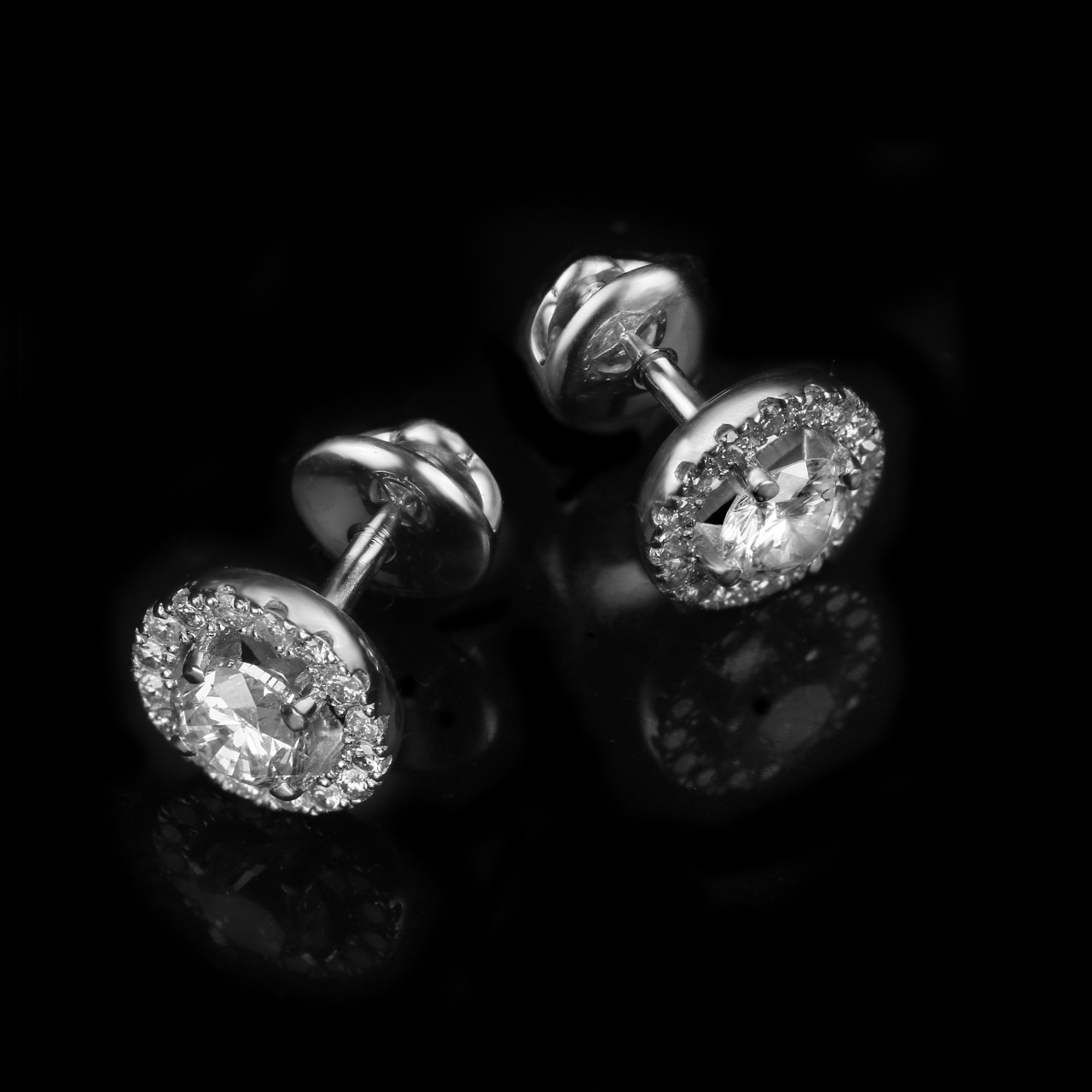 Серьги-пуссеты из белого золота с бриллиантами 0,98 карат (сертификат МГЦ)