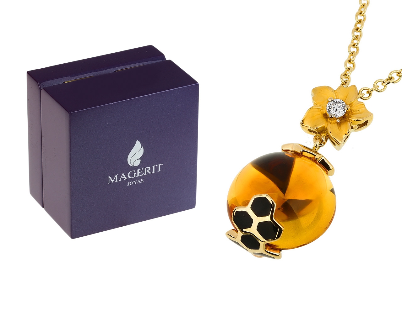 Золотой кулон с бриллиантом и цитрином Magerit Nature