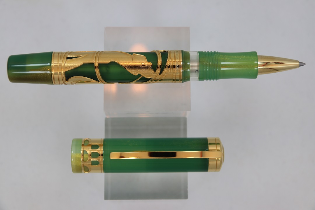 На колпачке ручки изображен силуэт моста Ponte Vecchio, на барреле ручки фигура игрока в гольф в момент удара по мячу и выгравировано имя игрока и номер ручки в формате хх/18.