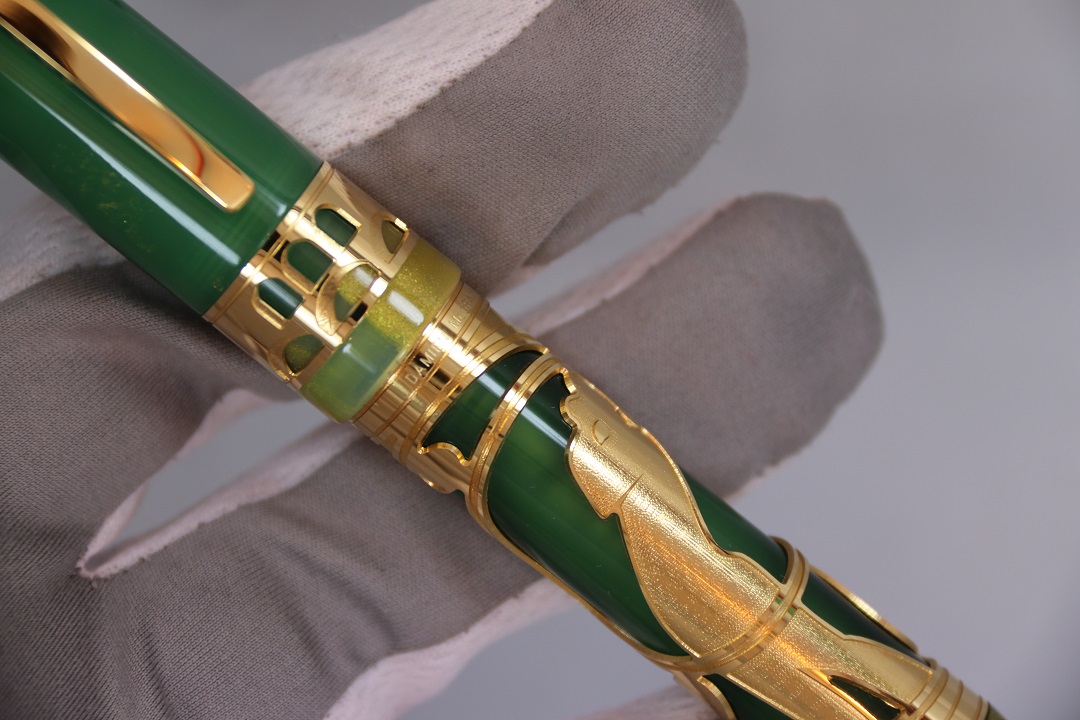 Корпус: зеленая полупрозрачная смола с золотой пылью.