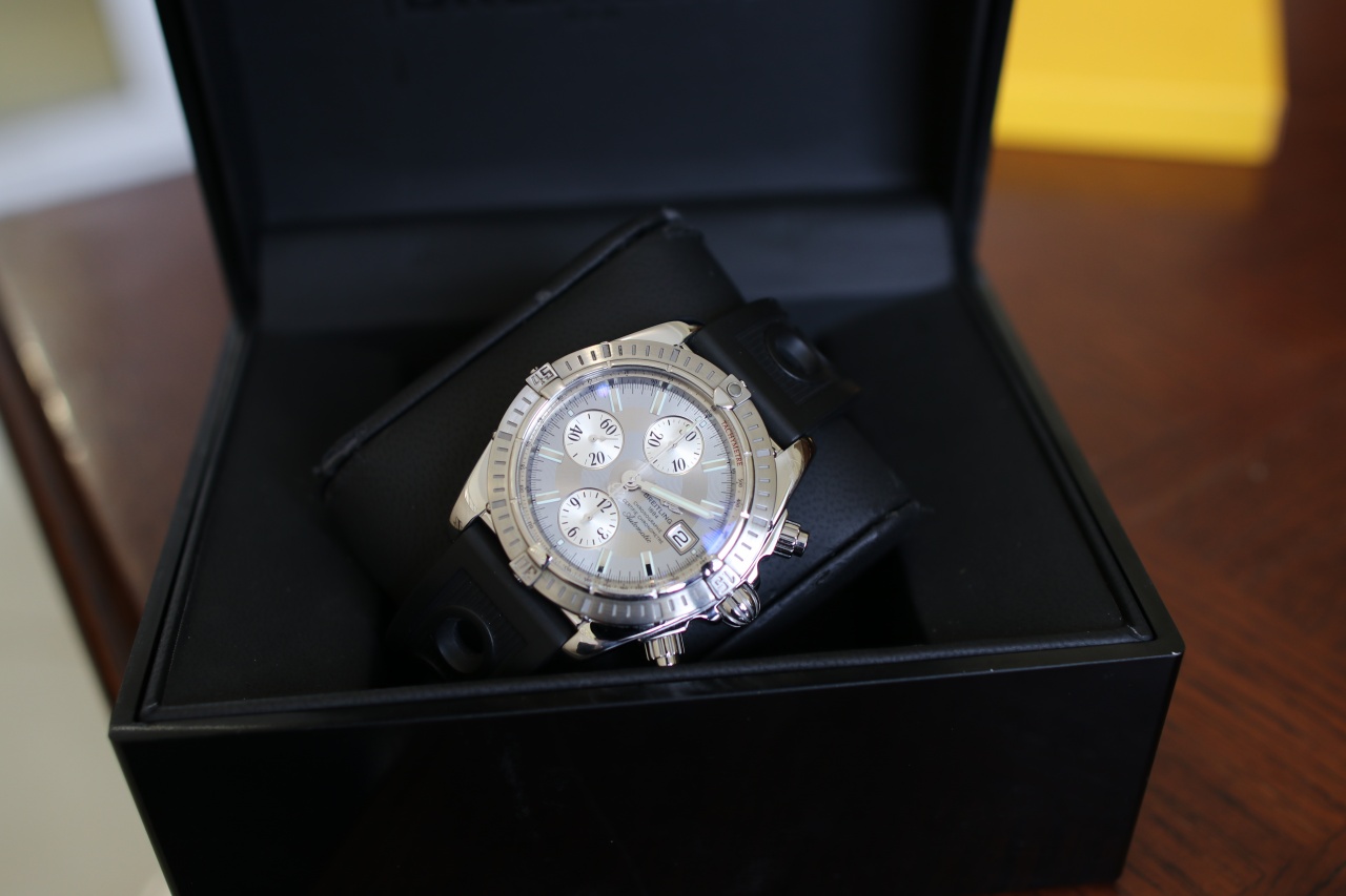 Отличный культовый Breitling , состояние великолепное перед продажей была сделана легкая , освежающая полировка! Ход отличный , антиблик в хорошем состоянии!