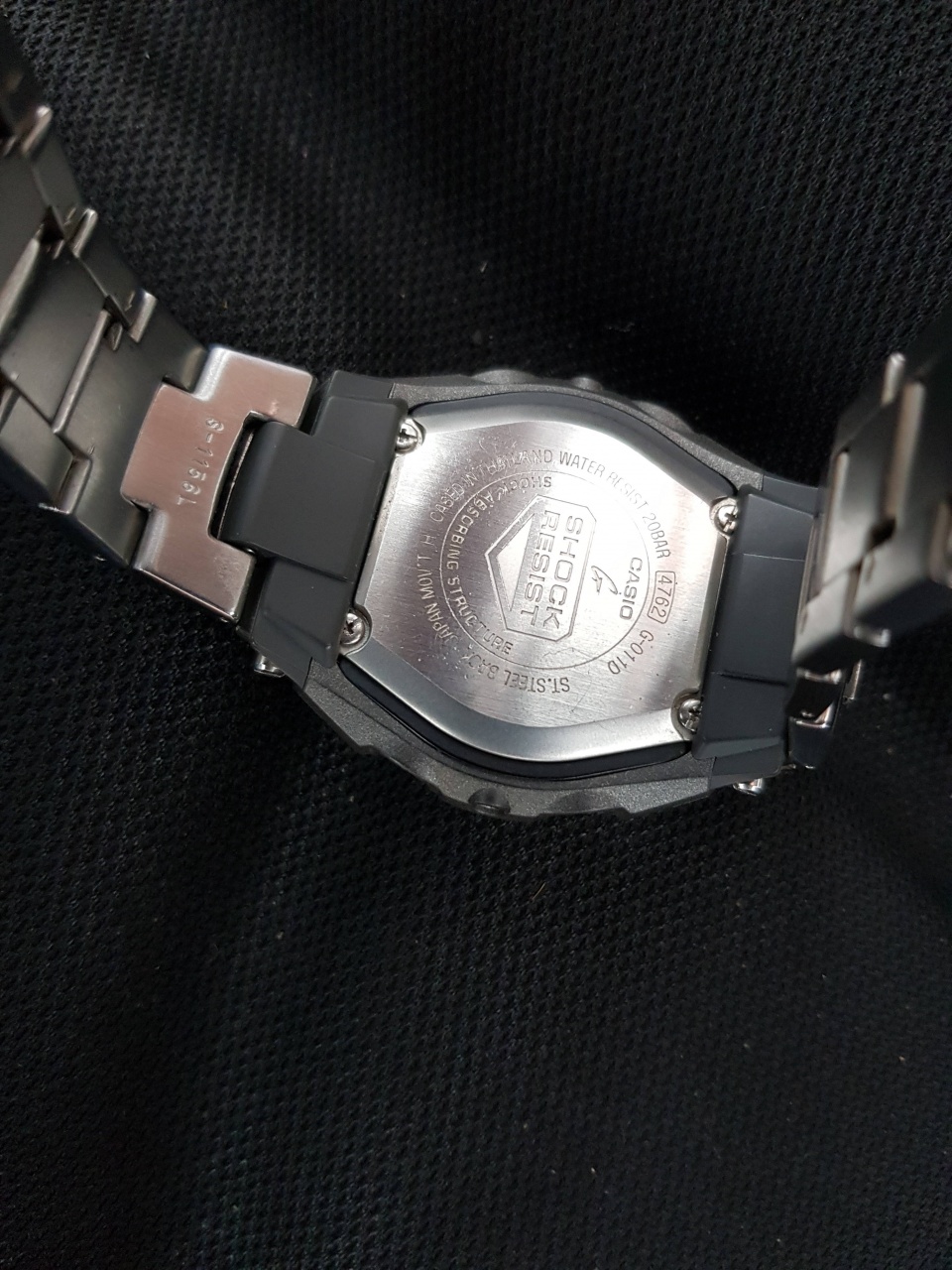 Никаких надписей на корпусе, часы смотрятся серьезно и солидно. Очень качественный и удобный стальной браслет.