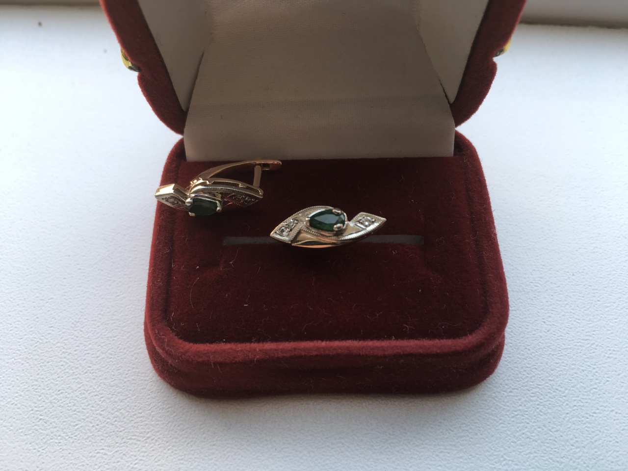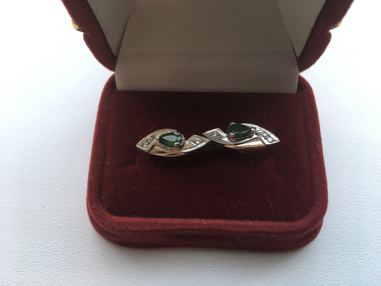 Золотые серьги с изумрудом и бриллиантами