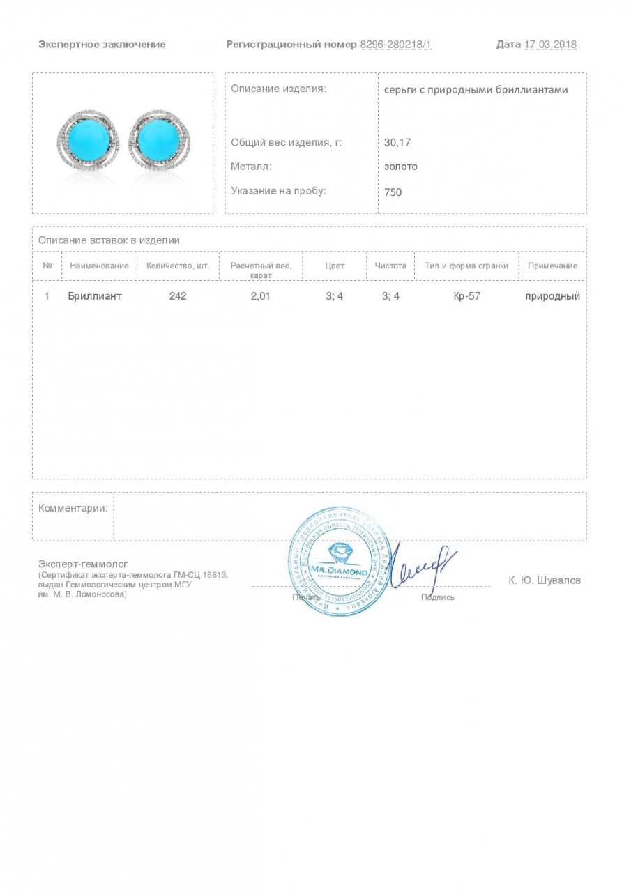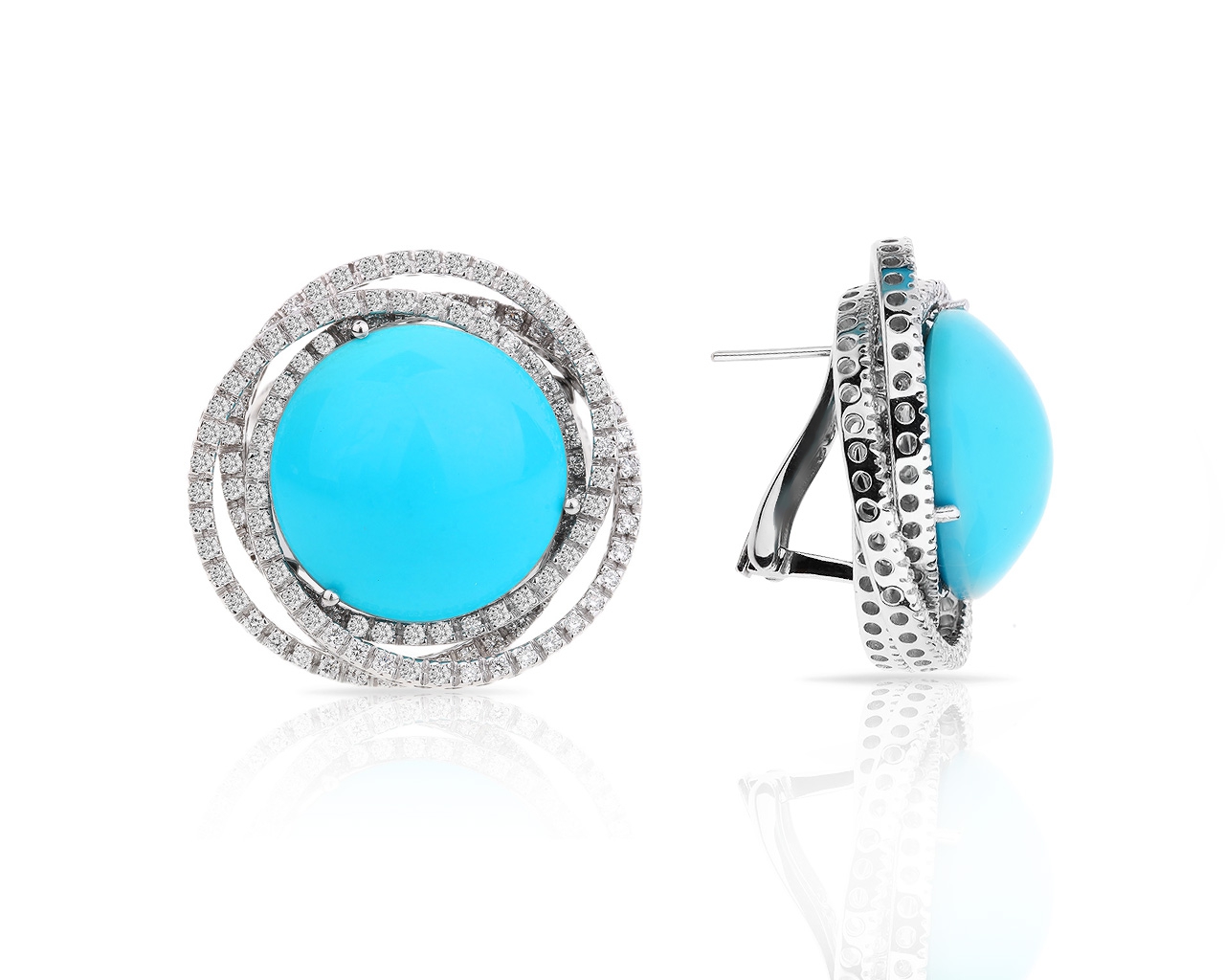 Золотые серьги с бирюзой и бриллиантами 2.01ct