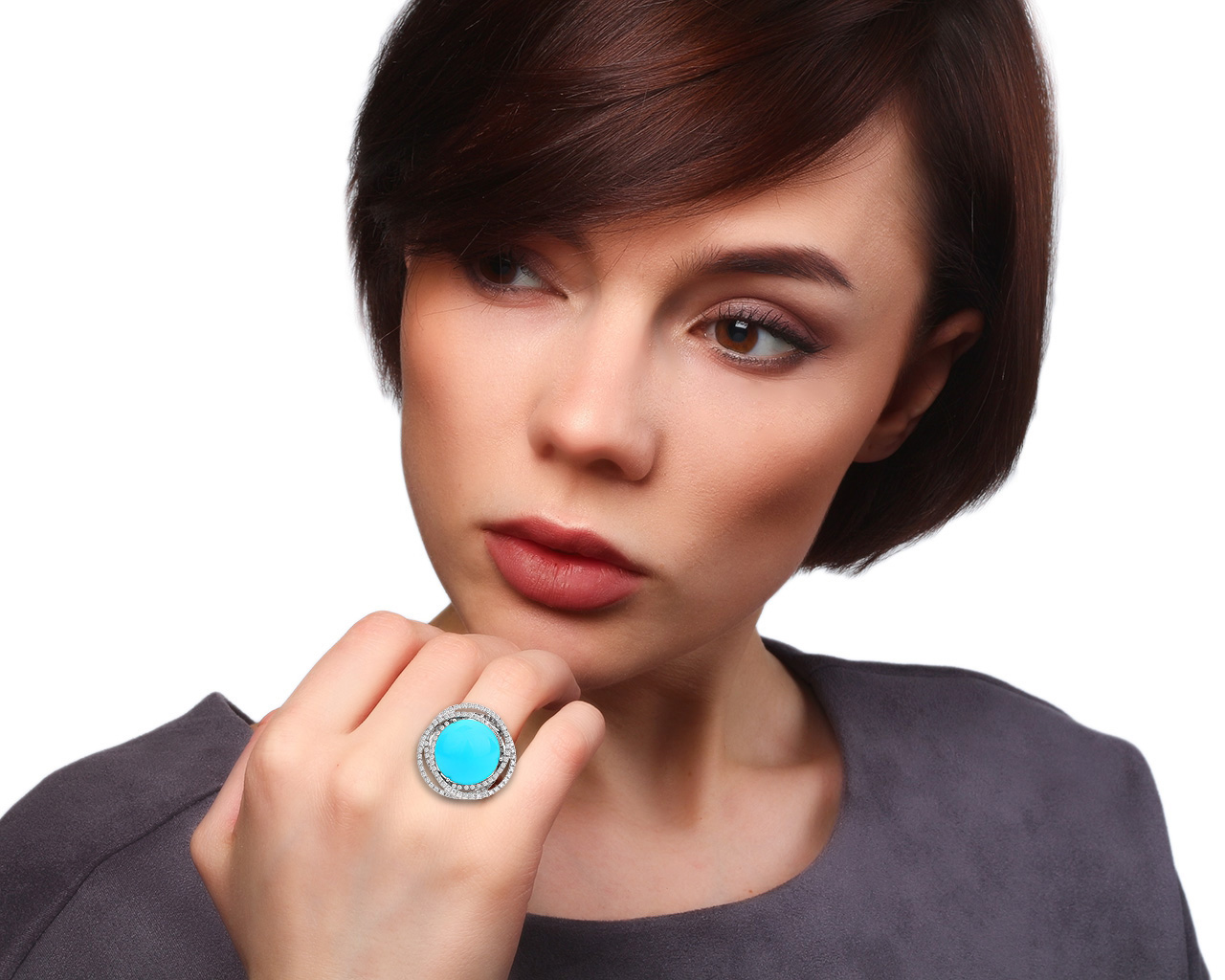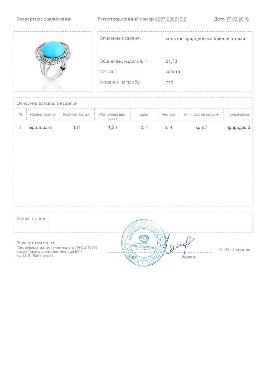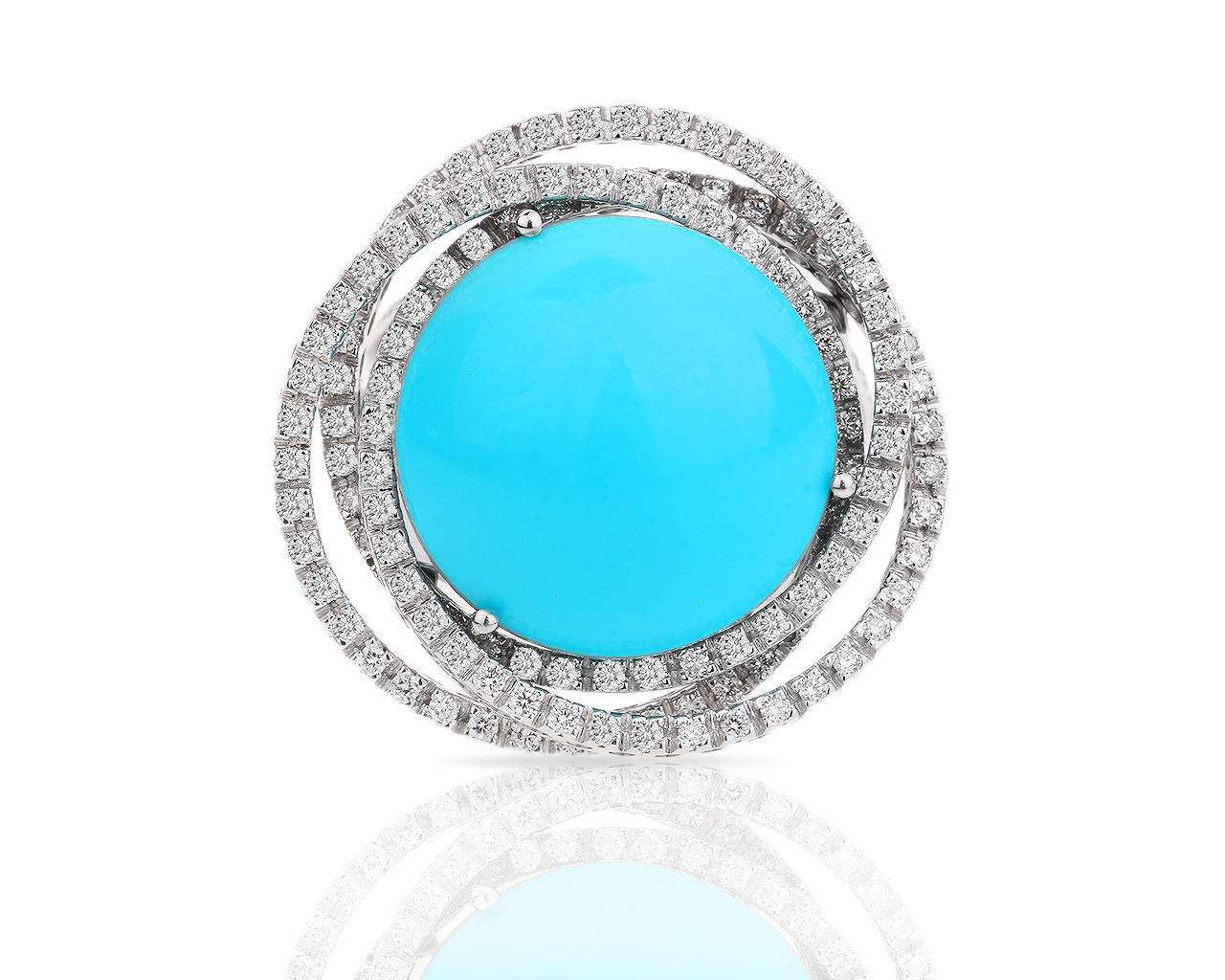 Золотое кольцо с бирюзой и бриллиантами 1.20ct