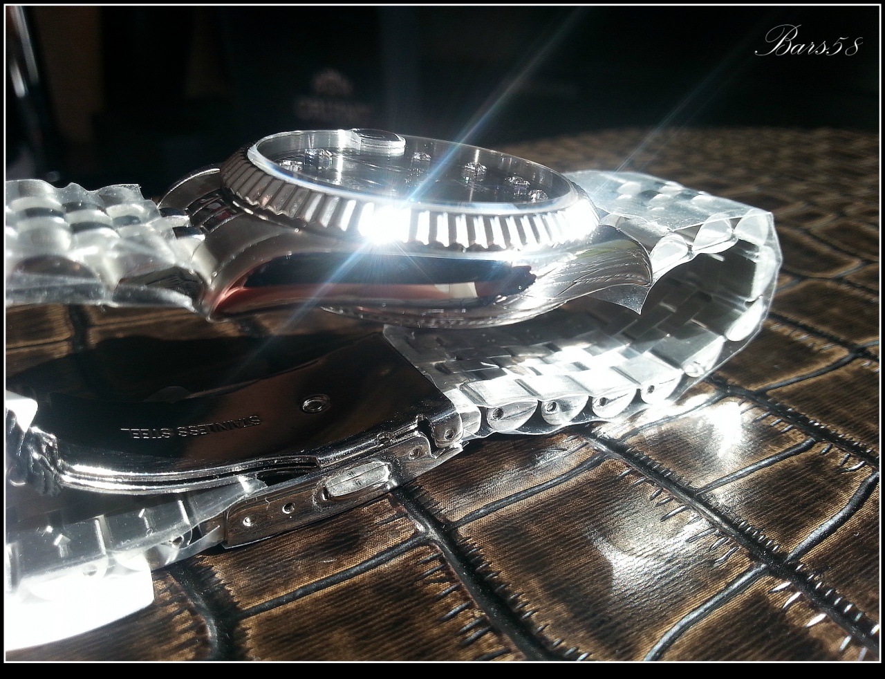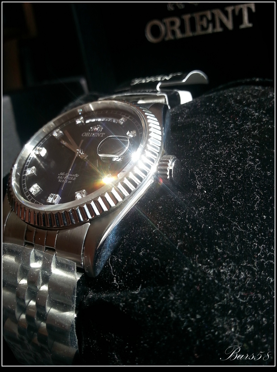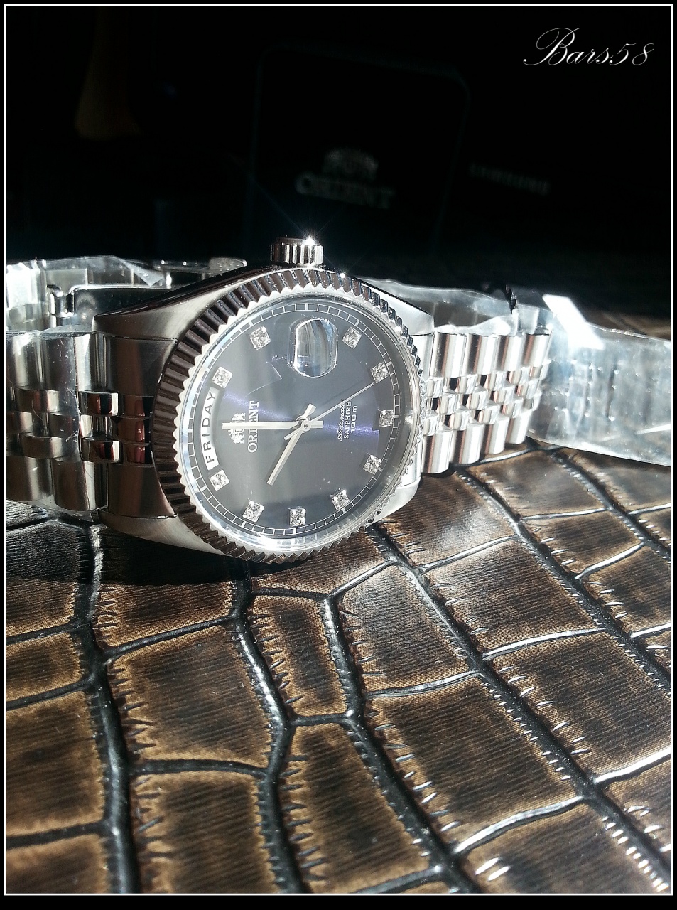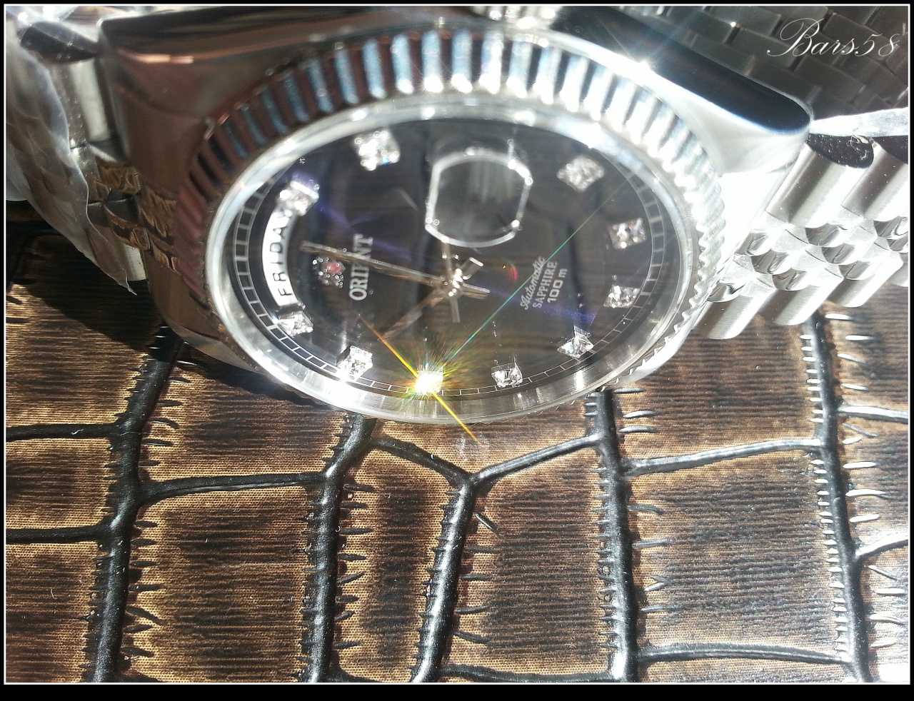 с прекрасным переливающимся тёмно-синим циферблатом и играющими при определённом освещении кристаллами (механика с автоподзаводом) 21 камень, калибр 46E40 (более чем проверенный и надёжный)-показал довольно внушительные результаты по точности и запасу хода, частота колебаний: 21,600 колебаний/час
