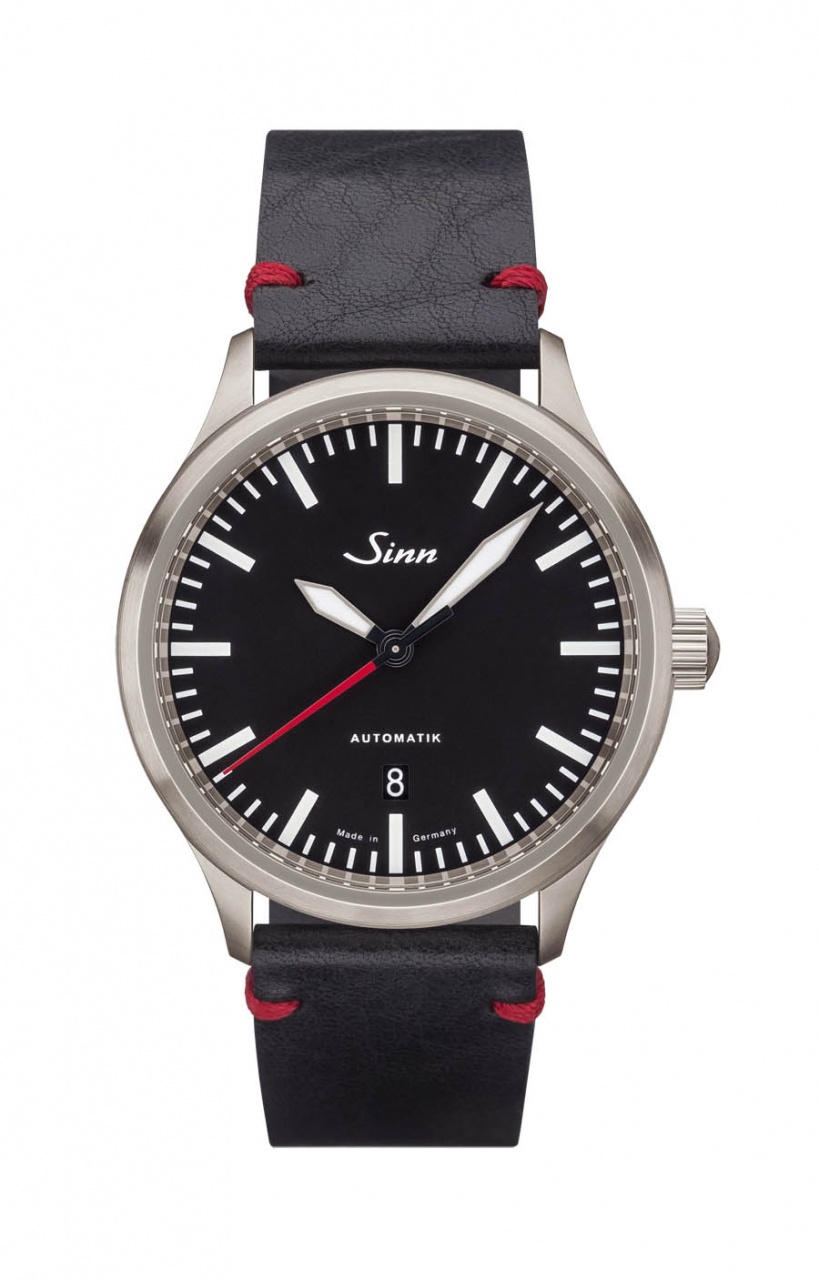 Круглый сатинированный корпус новинки, изготовленный из нержавеющей стали, диаметром 43,0 мм, водонепроницаемый до 100 метров. На торце завинчивающейся рифленой заводной головки, расположенной на 3 часах, выгравирован логотип бренда Sinn Spezialuhren. Внутренний корпус из мягкого железа обеспечивает защиту калибра от воздействия магнитных полей до 80000 A/m. Сапфировое стекло установлено на передней стороне часового корпуса и на его завинчивающейся задней крышке. Циферблат матово-черного цвета, с часовыми индексами, часовой и минутной стрелками, покрытыми люминесцентным составом белого цвета. Секундная стрелка выполнена в красном цвете. Модель оснащена швейцарским автоматическим механизмом ETA 2892? с функциями индикации часов, минут, секунд (посредством соответствующих центральных стрелок) и даты (посредством соответствующего цифрового указателя в прямоугольной апертуре, расположенной на 6 часах).