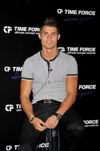 Криштиану Роналду тратит свободное от основной работы (то есть, от футбольных матчей и тренировок) время очень выгодно. Он продолжает зарабатывать деньги своим телом - например, рекламируя часы Time Force.